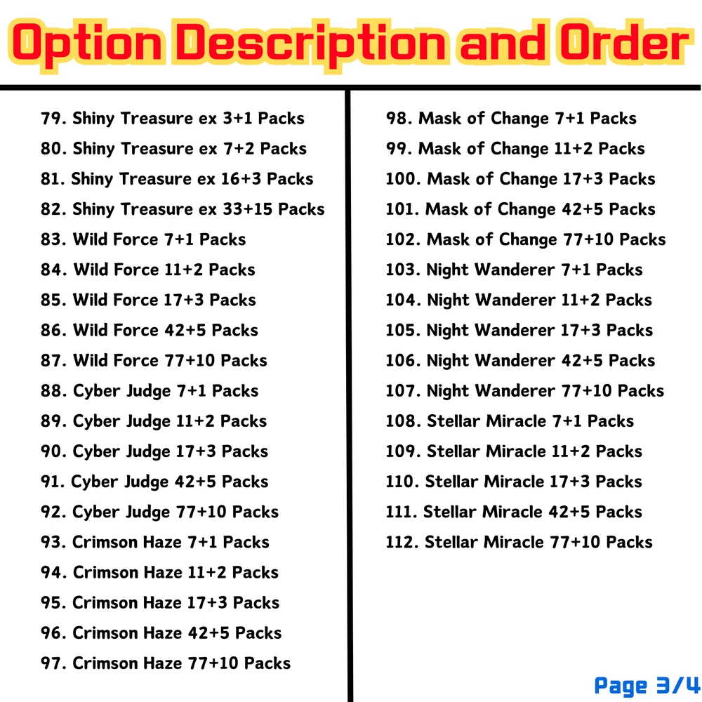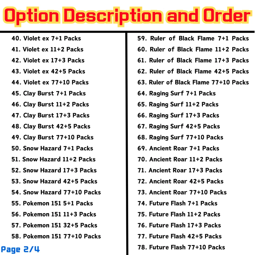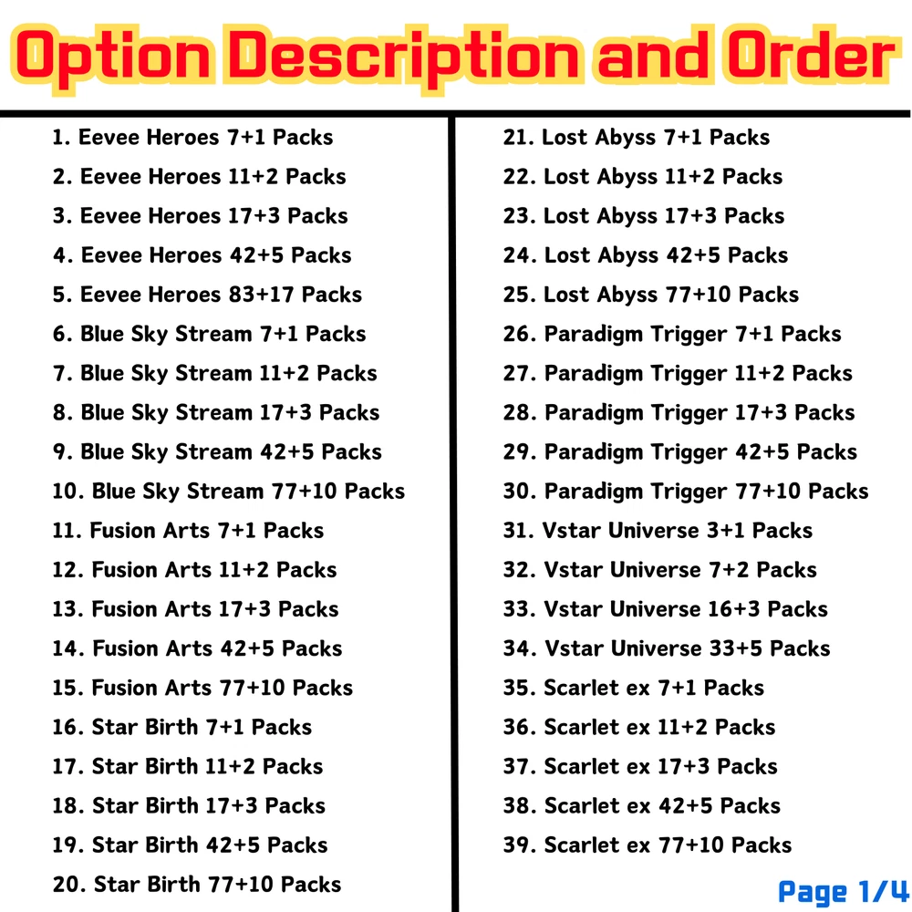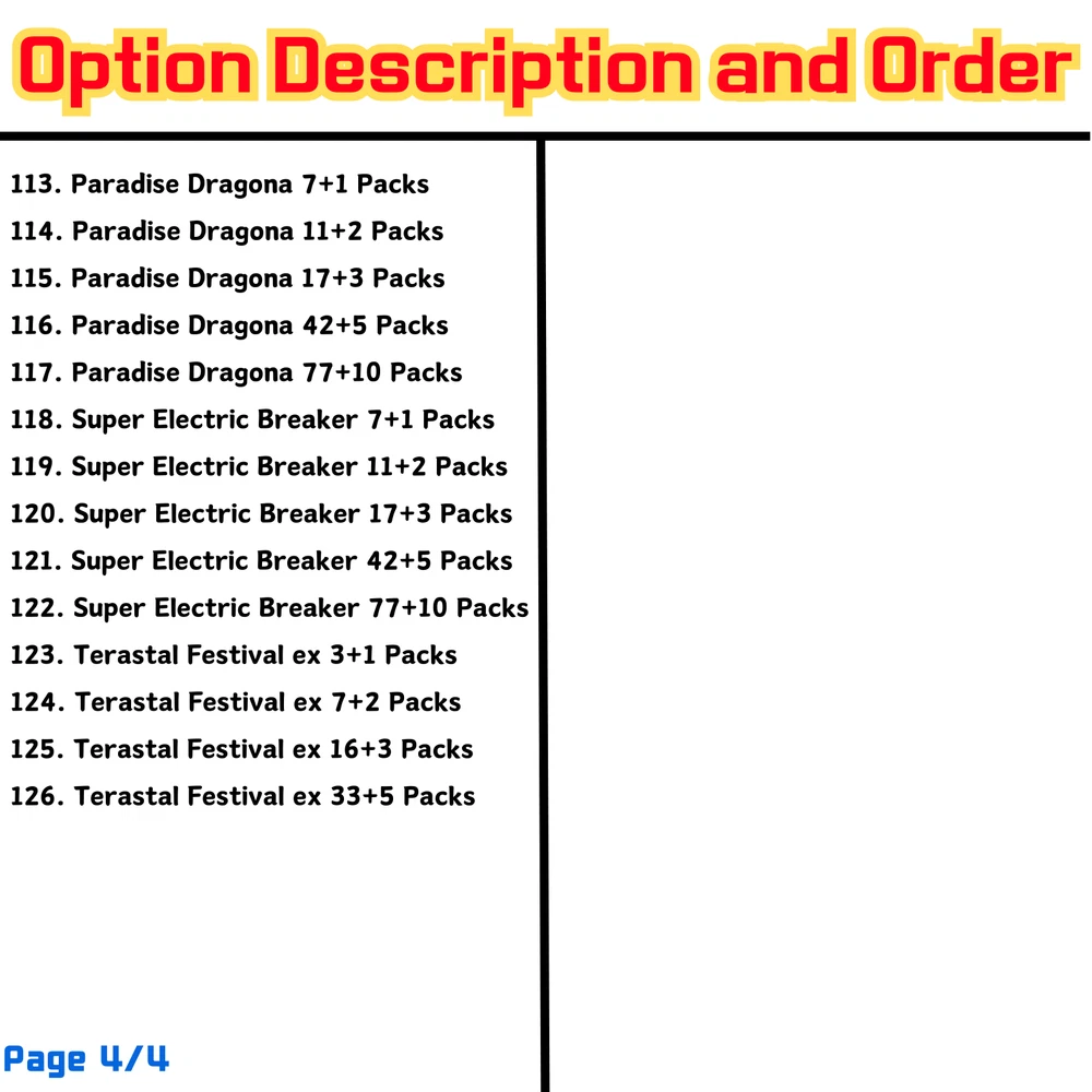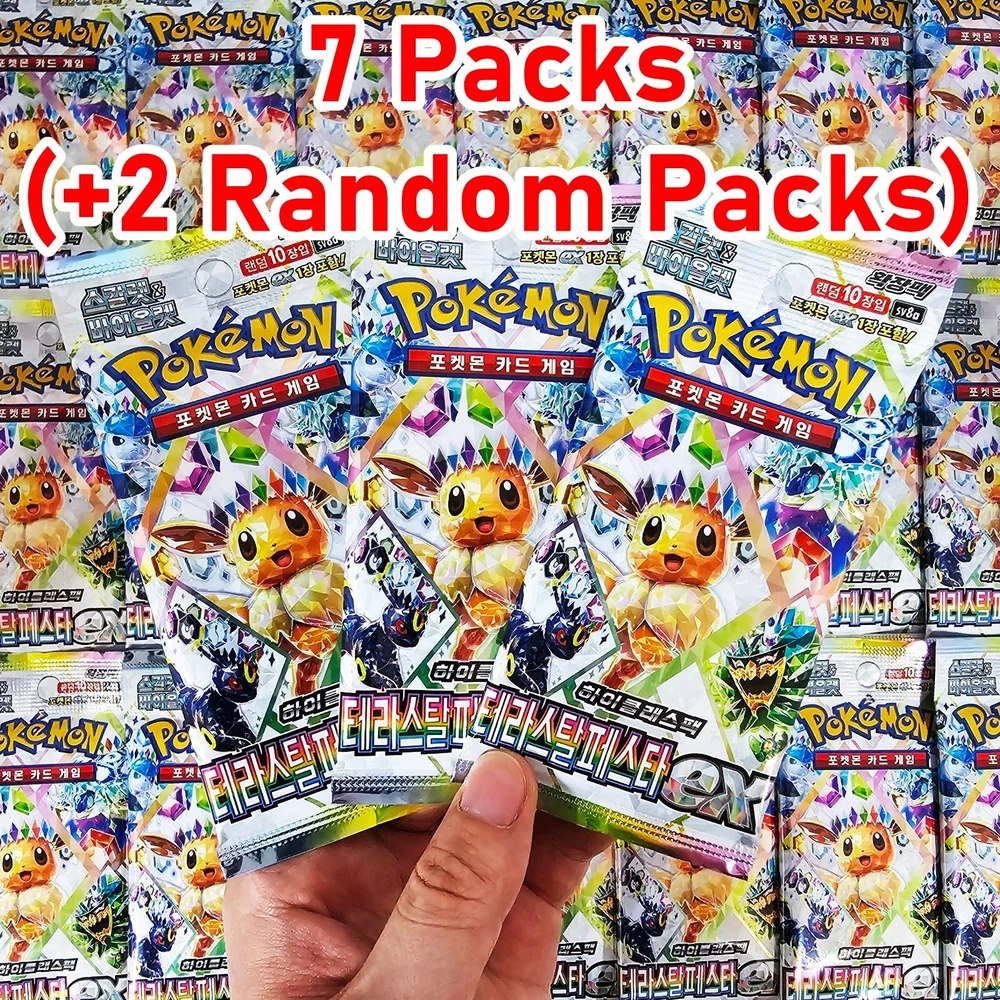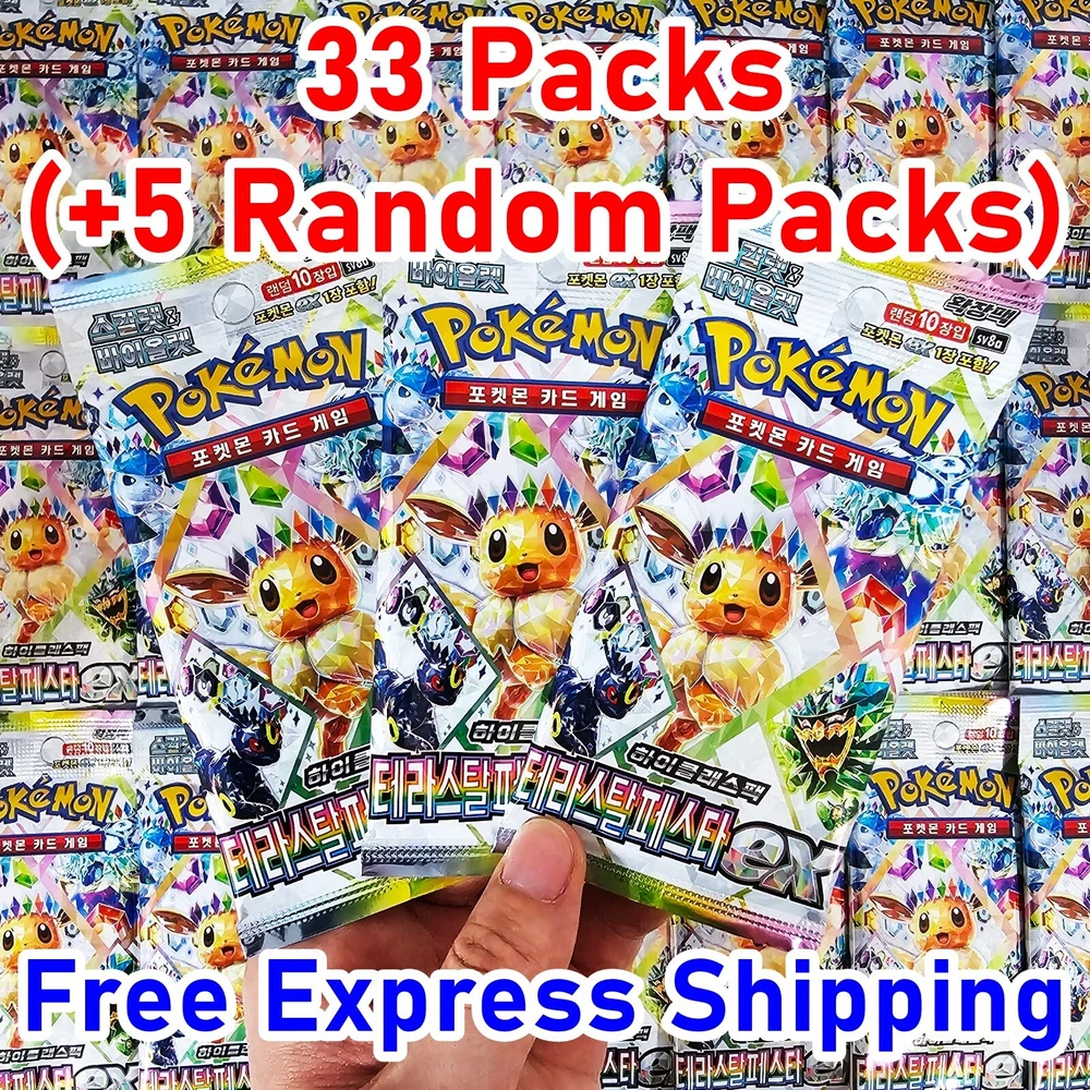 Pokemon Card Terastal Festival Ex Eevee Heroes Etc. Booster Packs Sealed Korean Are You Looking For a Variety of Korean Pokemon Card Boxes ? Please Click this Text!!! < Event > Free additional Random Service Packs included!! + Free shipping Upgrade (Economy -> Express ) on purchases Over $200 If you want a Lucky Chance to Win Pokémon Cards through an Auction, Click this Text!!! [ Doreen Store Opening 2st Anniversary] ( Limited Event ) + Random Giveaway of Pokemon Card Packs (Service) < Sword & Shield > Eevee Heroes (Evolving Skies) s6a / Blue Sky Stream (Evolving Skies) s7R / Fusion Arts ( Fusion Strike) s8 / Star Birth (Brilliant Stars) s9 / Lost Abyss ( Lost Origin) s11 / Paradigm Trigger (Silver Tempest) s12 Vstar Universe s12a < Scarlet & Violet > Scarlet ex ( Scarlet & Violet) sv1S / Violet ex ( Scarlet & Violet) sv1V / Clay Burst (Paldea Evolved) sv2D / Snow Hazard (Paldea Evolved) sv2P / Pokemon 151 sv2a / Ruler of Black Flame (Obsidian Flames) sv3 / Raging Surf sv3a / Ancient Roar ( Paradox Rift) sv4K Future Flash ( Paradox Rift) sv4M / Shiny Treasure ex sv4a / Wild Force (Temporal Forces) sv5K / Cyber Judge (Temporal Forces) sv5M Crimson Haze ( Twilight Masquerade ) sv5a / Mask of Change ( Twilight Masquerade) sv6 Night Wanderer ( Shrouded Fable) sv6a / Stellar Miracle ( Stellar Crown) sv7 Paradise Dragona ( Surging Sparks) sv7a / Super Electric Breaker ( Surging Sparks) sv8 Terastal Festival ex sv8a Etc... (Randomly provided type and quantity) EVENT Description Product Description Pokemon Card Terastal Festival Ex Eevee Heroes Etc. Booster Packs Sealed Korean Please read the event-related picture well !!! All Pokemon cards are 100% Korean official Authentic Factory Sealed Model Name: Pokemon Card Game Manufacturer Name: Pokemon Korea Co., Ltd. Country of manufacture: Korea If you want to see different Pokemon cards at once, please click this text! Important Points Seller Comment Copyright © Doreen Track Page Views With Auctiva's Counter