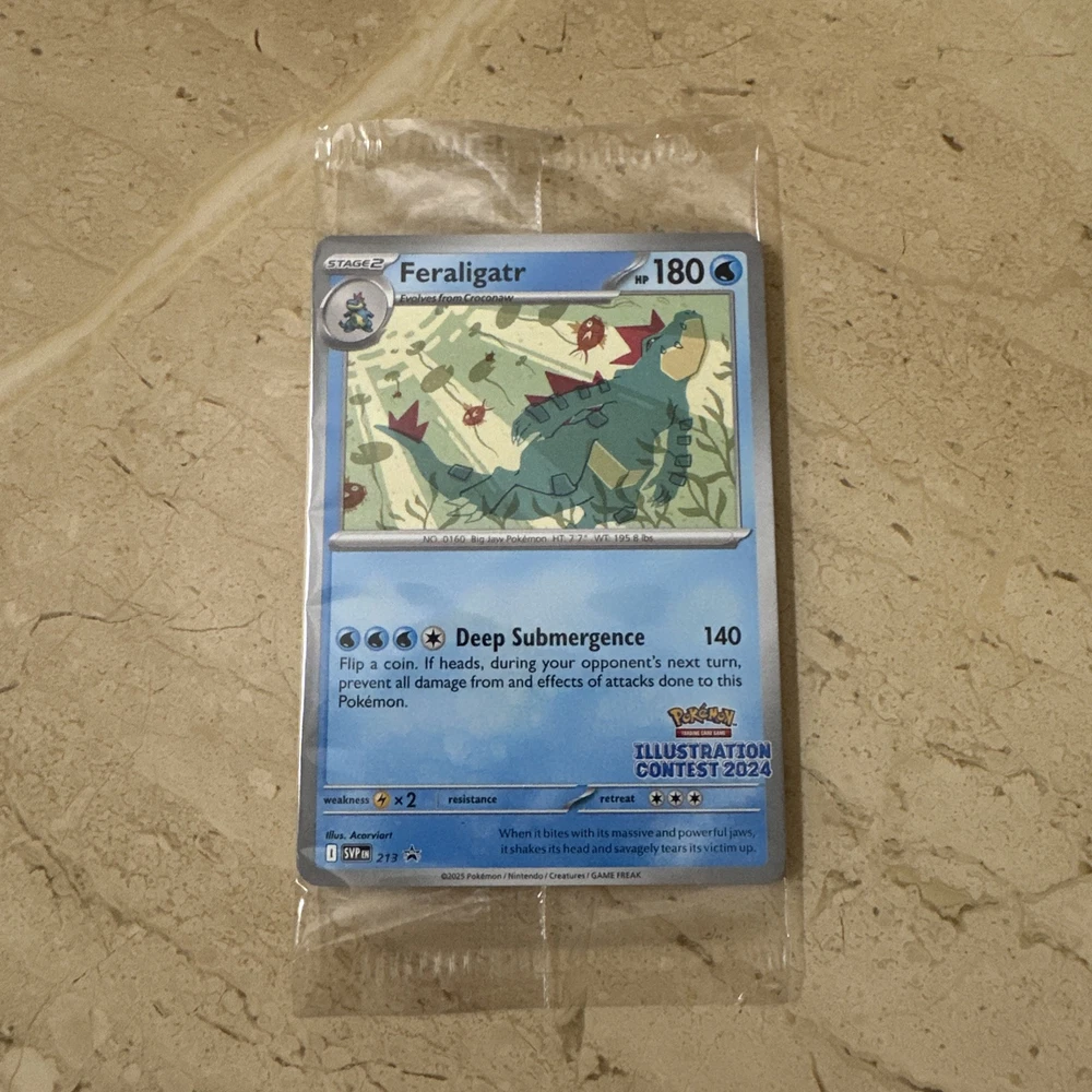 Pokemon Illustration Contest 2024 factory sealed pack of 3 cards (Feraligatr, Pikachu, Toxtricity ex). Will be shipped in a Stay-Flat envelope. Order may not be exactly the same as listing photos, photos are only provided as reference.