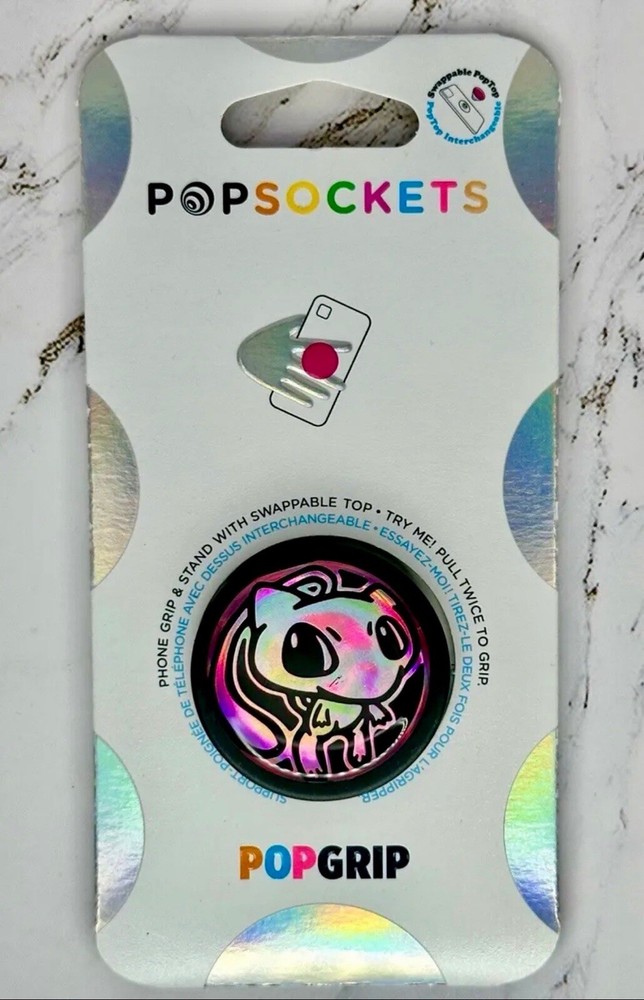 Enhance your mobile experience with this PopSockets phone holder featuring the adorable Pokémon Mew. This convenient accessory allows you to securely grip your phone while taking selfies, texting, or browsing your favorite apps. With its collapsible design, it can also function as a stand for easy hands-free viewing. Perfectly compatible with any phone or tablet, this PopSockets holder is a must-have for any Pokémon fan. Use this Pop-Up Phone Holder to add some flair and functionality to your device. Its durable adhesive ensures it stays in place, while its flexible design allows for easy removal and repositioning. Ideal for on-the-go use, this holder is compatible with most cases and can easily be swapped between devices. Get this Pokémon-themed PopSockets holder now to elevate your phone game!