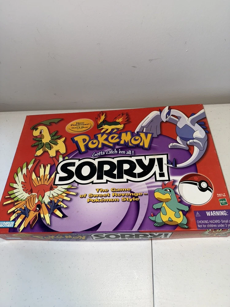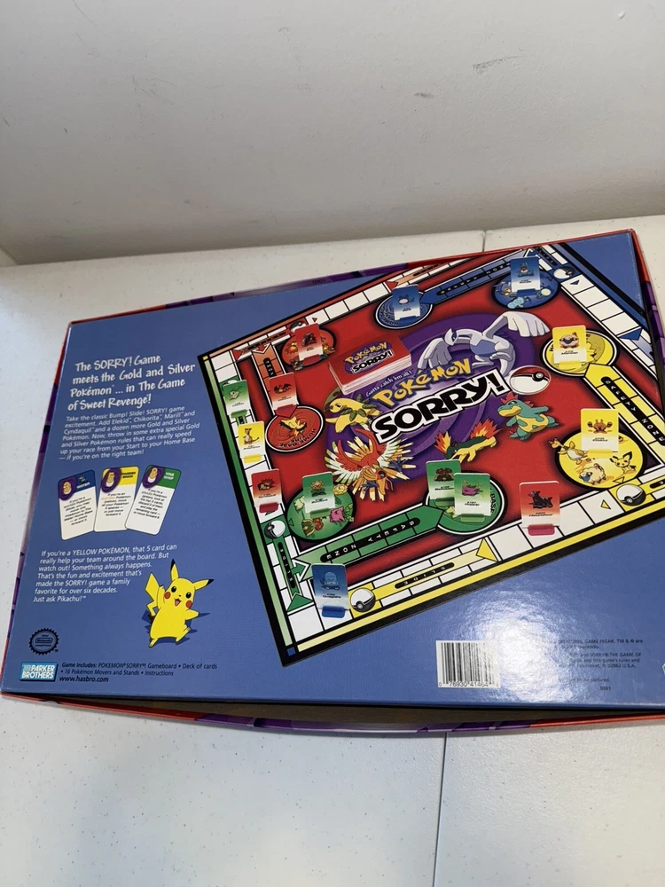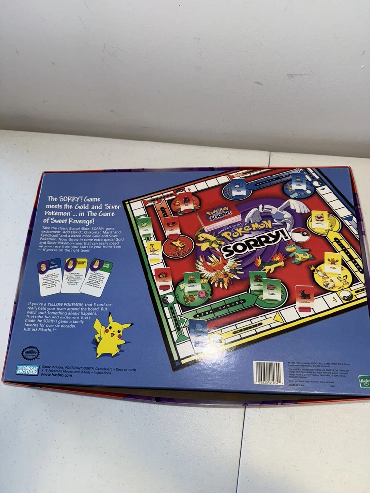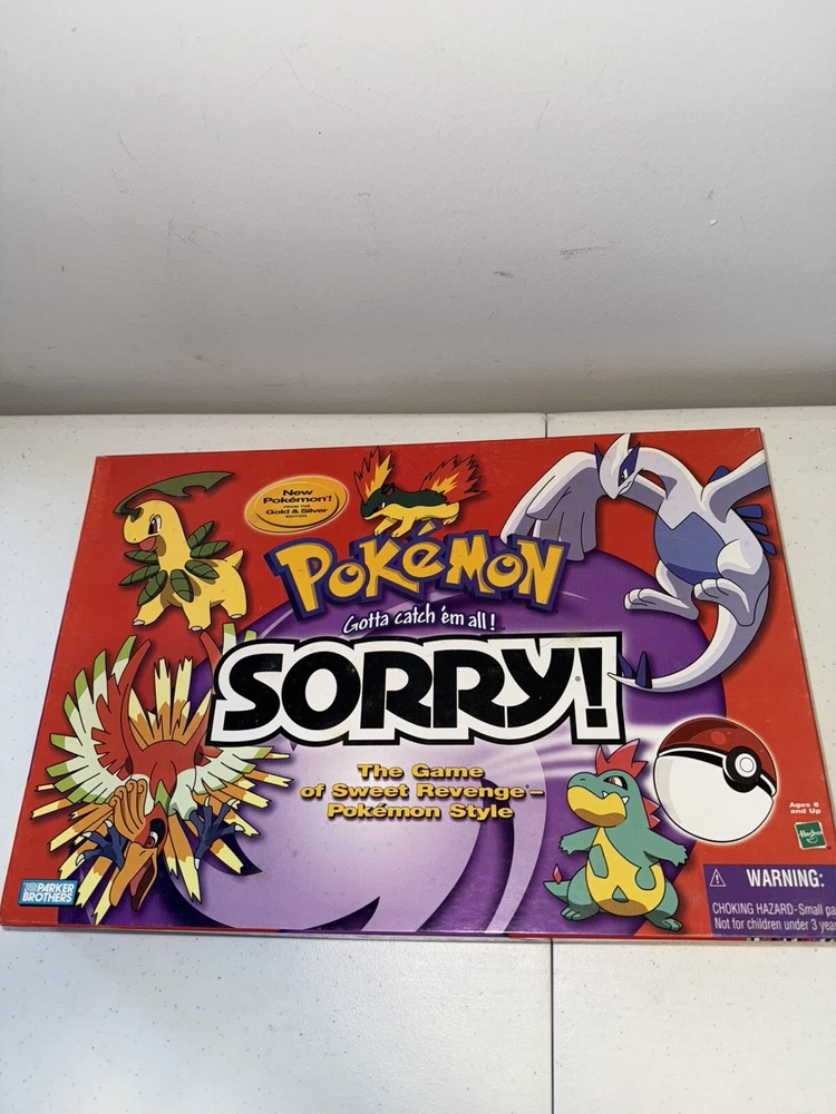 Color:RedGame Type:Board GameTheme:Movie & TVCharacter Family:PokemonUPC:76930414644Brand:HasbroGender:Boys & GirlsMin. Number of Players:2 playersType:Game Boardgtin13:76930414644Age Level:4-7, 8-11 Years, 12-16 Years, 17 Years & UpYear:2001Recommended Age Range:6 and UpGame Title:Sorry!