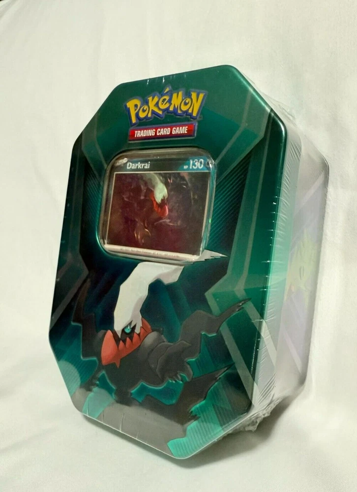 Brand new/factory sealed Triple Whammy Darkrai Tin. Tin contains 3 foil cards featuring Sableye, Spiritomb and Darkrai and 3 booster packs. *Shipping will be USPS Ground Advantage and will ship same day if ordered by 2pm PST on a business day. Feel free to reach out with any questions!