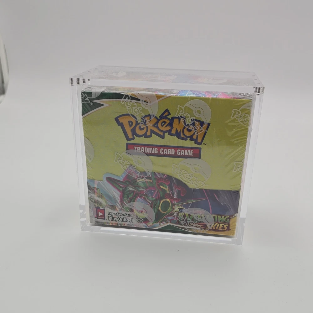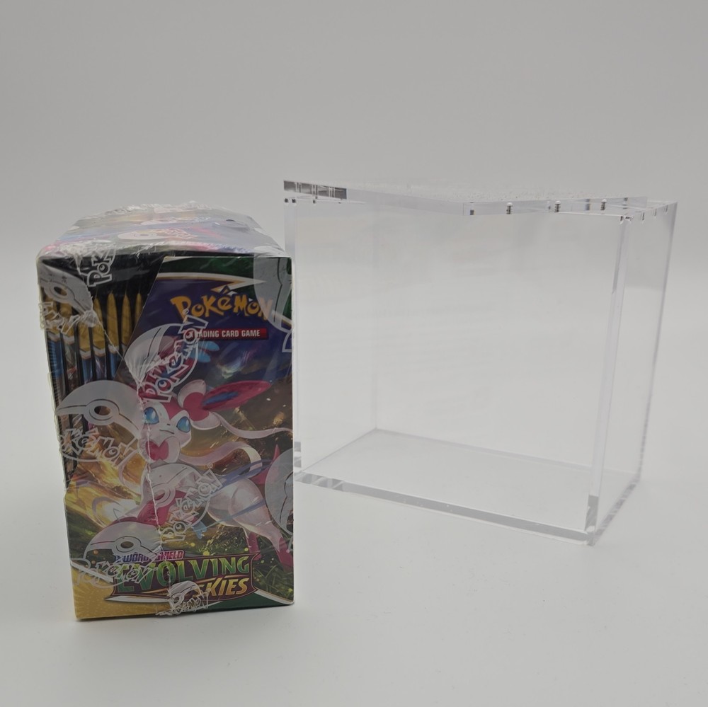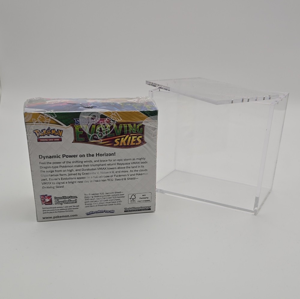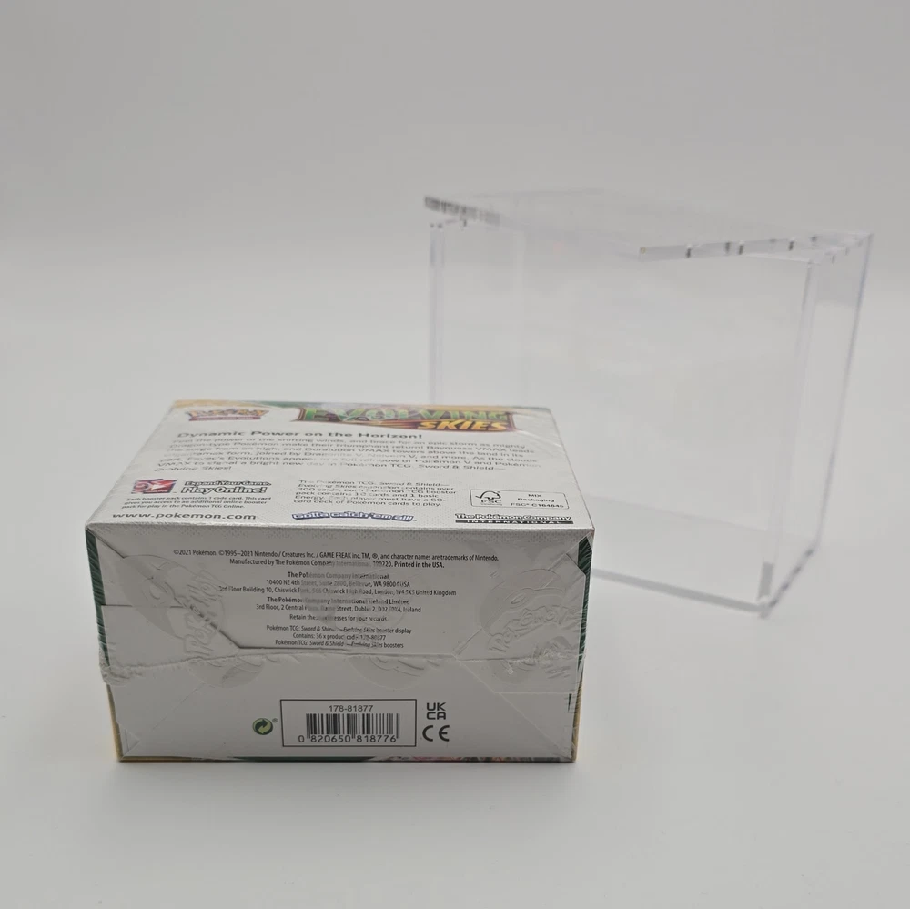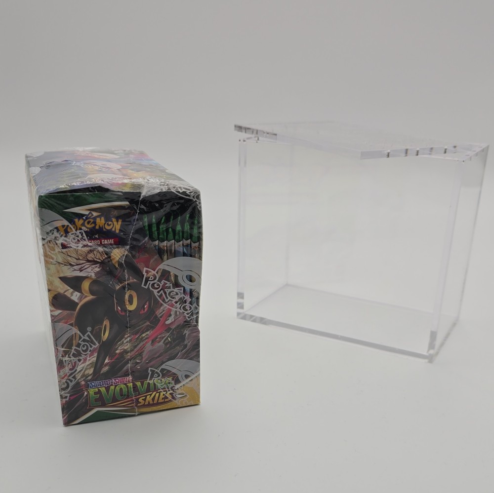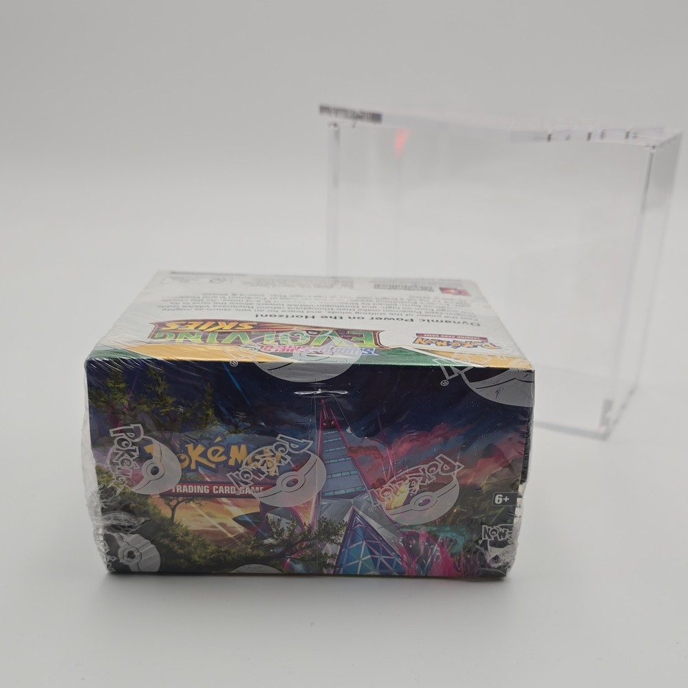 Brand new and sealed Evolving Skies 36 pack booster box includes Perspex protective case. Packaging has a cut on top (probably from a knife when the box was originally unpacked), there is also a corresponding faint score mark on the box please see photos.