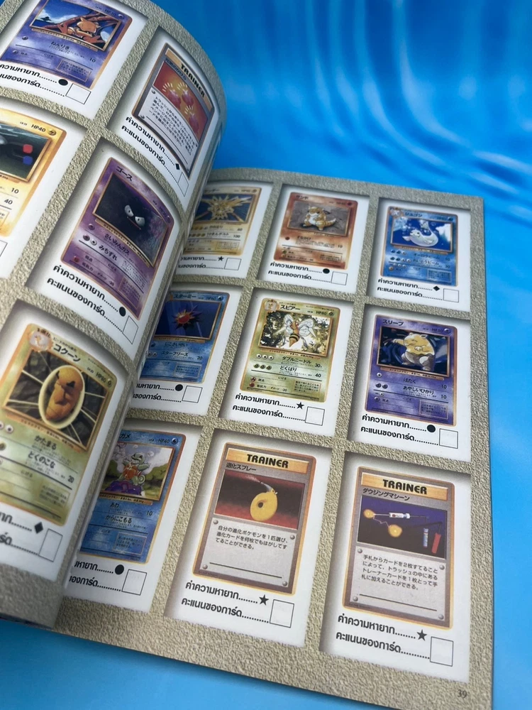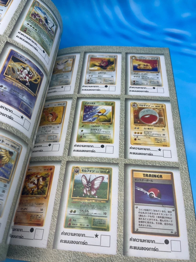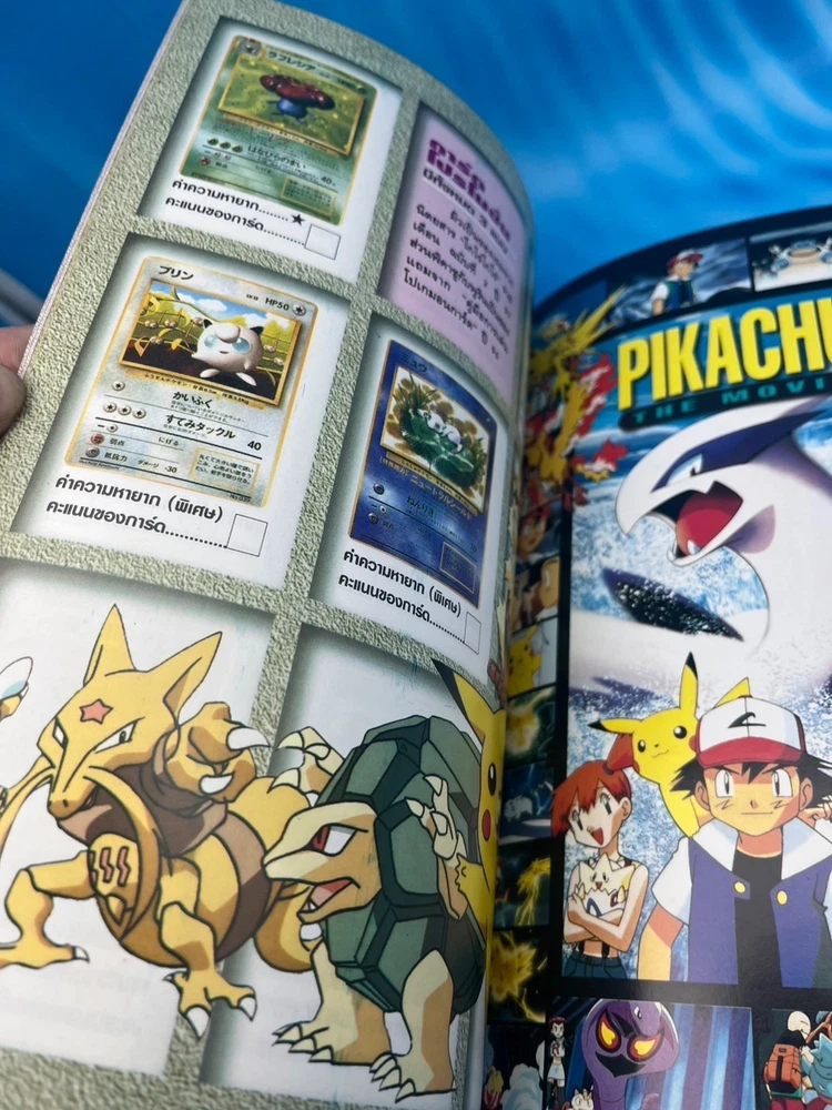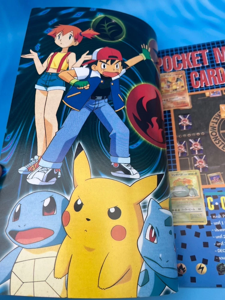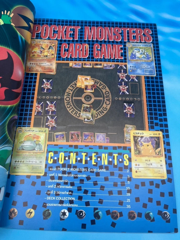 For collectors: this is a true gem. ✅ Features Authentic Pokémon Trading Card Game (Pocket Monsters) Thai-language guidebook Complete vintage collector’s and gameplay manual , featuring early Japanese and U.S. Pokémon TCG releases Full-color pages showcasing the original 102 Base Set cards , including Pikachu, Charizard, Blastoise, and Venusaur Contains rule explanations, deck-building tips, tournament images, and card catalog checklists Published in Thailand (late 1990s or early 2000s, around the release of Pokémon: The First Movie ) Back cover displays full Pocket Monsters Card Game artwork with original 3D Pokémon renders An official Thai edition , extremely limited and nearly impossible to find today 🧭 Why it’s so rare This Thai-language Pocket Monsters Special Card Game guidebook was printed during the first wave of Pokémon TCG’s global expansion , around the late 1990s. While Japanese and English versions were widely distributed, the Thai market received only a tiny localized batch , making this edition extraordinarily scarce. Very few copies survived intact — this is a true museum piece for serious Pokémon collectors, especially those focusing on international TCG history. 💎 Condition Excellent vintage condition overall Bright cover colors with light shelf wear only All pages intact and clean No missing pages or writing Collector-grade preservation for its age 📦 Shipping Ships securely from Thailand Packaged with bubble wrap and cardboard protection Worldwide tracked shipping available 🔍 Pokémon Thai Magazine, Pocket Monsters Thailand, Pokémon Card Game Guide, Pokémon TCG Book Thailand, Pikachu Vintage Book, Pokémon 1990s Collector Guide, Pocket Monsters Special Card Game Thai Edition, Pokémon Card Catalog Thailand, Ultra Rare Pokémon Book, Pokémon Thailand 1990s Vintage
