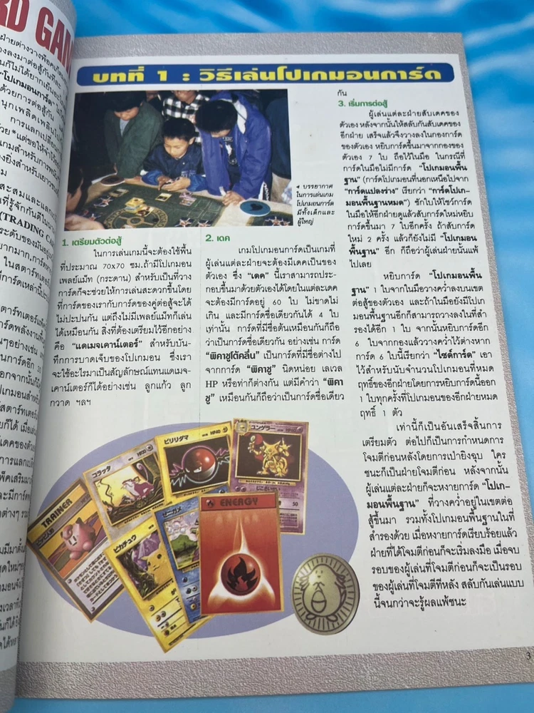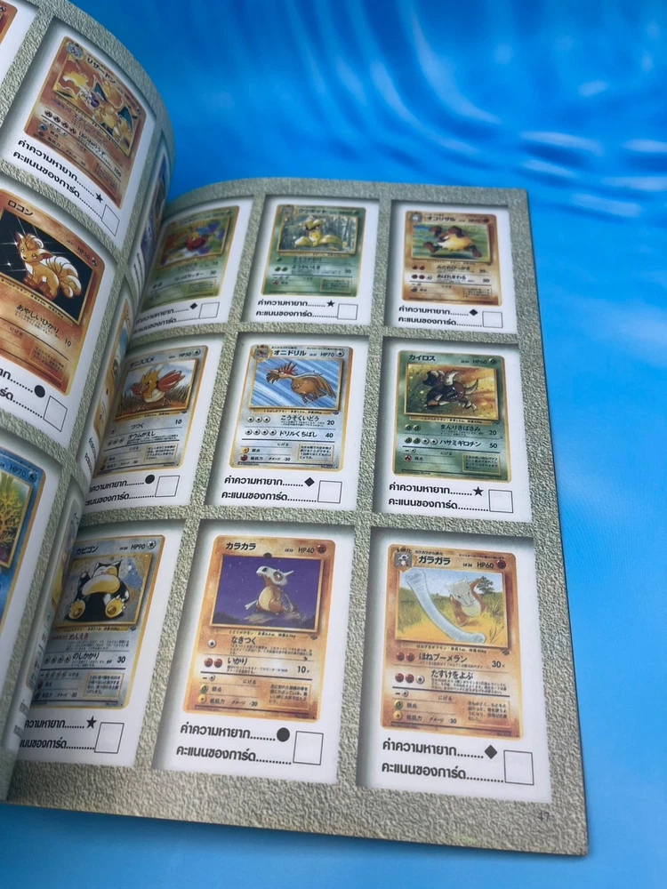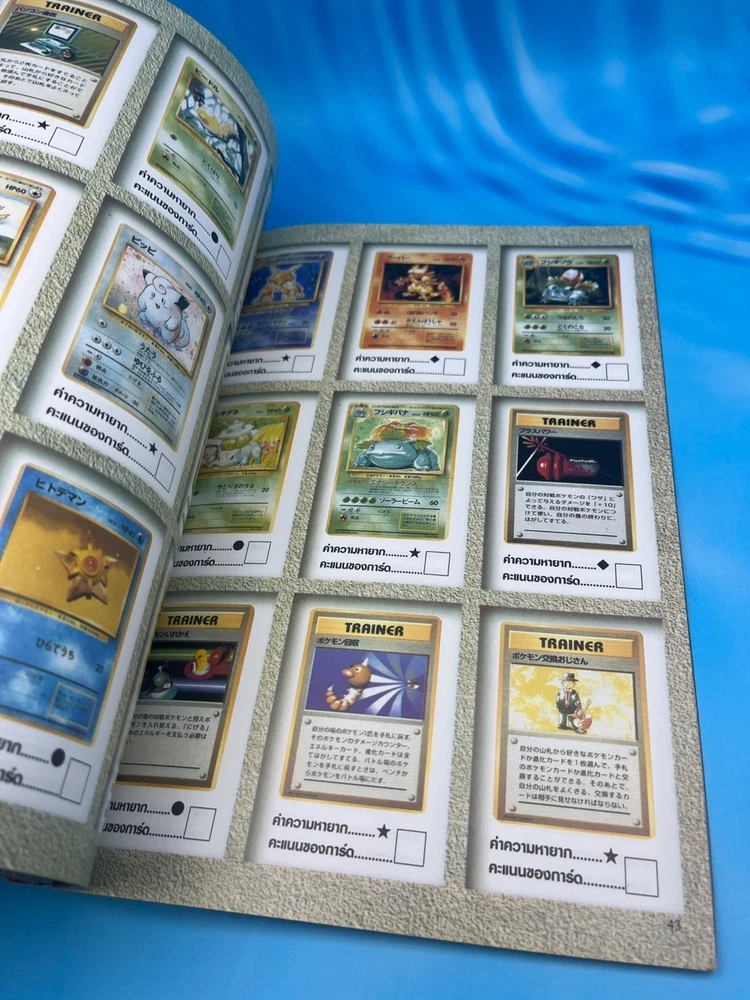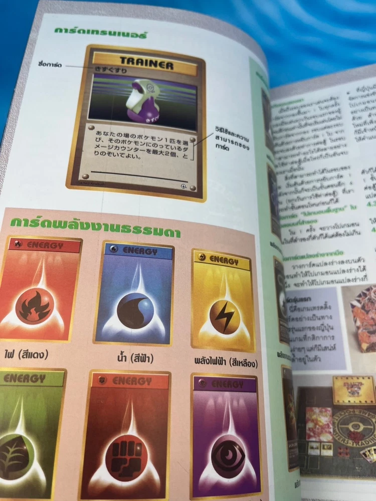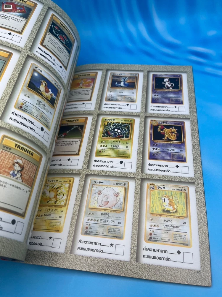 For collectors: this is a true gem. ✅ Features Authentic Pokémon Trading Card Game (Pocket Monsters) Thai-language guidebook Complete vintage collector’s and gameplay manual , featuring early Japanese and U.S. Pokémon TCG releases Full-color pages showcasing the original 102 Base Set cards , including Pikachu, Charizard, Blastoise, and Venusaur Contains rule explanations, deck-building tips, tournament images, and card catalog checklists Published in Thailand (late 1990s or early 2000s, around the release of Pokémon: The First Movie ) Back cover displays full Pocket Monsters Card Game artwork with original 3D Pokémon renders An official Thai edition , extremely limited and nearly impossible to find today 🧭 Why it’s so rare This Thai-language Pocket Monsters Special Card Game guidebook was printed during the first wave of Pokémon TCG’s global expansion , around the late 1990s. While Japanese and English versions were widely distributed, the Thai market received only a tiny localized batch , making this edition extraordinarily scarce. Very few copies survived intact — this is a true museum piece for serious Pokémon collectors, especially those focusing on international TCG history. 💎 Condition Excellent vintage condition overall Bright cover colors with light shelf wear only All pages intact and clean No missing pages or writing Collector-grade preservation for its age 📦 Shipping Ships securely from Thailand Packaged with bubble wrap and cardboard protection Worldwide tracked shipping available 🔍 Pokémon Thai Magazine, Pocket Monsters Thailand, Pokémon Card Game Guide, Pokémon TCG Book Thailand, Pikachu Vintage Book, Pokémon 1990s Collector Guide, Pocket Monsters Special Card Game Thai Edition, Pokémon Card Catalog Thailand, Ultra Rare Pokémon Book, Pokémon Thailand 1990s Vintage