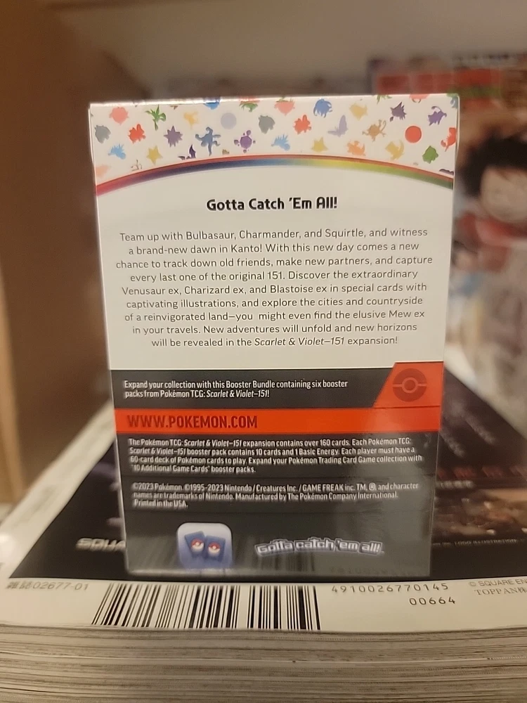 This Pokémon TCG bundle features the Scarlet & Violet set, with 151 booster packs sealed and ready for use. The cards are in English. The set was manufactured in 2023, making it a great addition to any collector's stash. Whether you're a seasoned player or just starting out, this bundle is perfect for you. Get ready to catch 'em all!