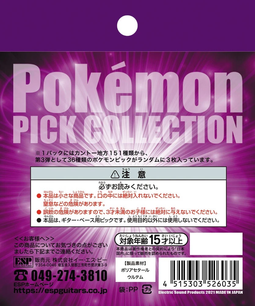 Description Pokemon Pick Collection Kanto Region 3rd Edition 4 Pack Set We are releasing the third edition of the Pokemon Pick Collection, printed with cute Pokemon. The third edition also features Pokemon from the Kanto region, with a total of 36 types, including Gengar, Slowpoke, and Geodude. Of course, Pikachu will continue to appear. The front features cute illustrations of Pokemon, and the back features different monster balls depending on the evolution stage. In addition, Pokemon with two attributes are available in a lineup of different colors according to each attribute. This is a highly collectible item. *Each pack contains 3 random picks out of the 36 types. Shipping We attach the tracking number to all items. We do not mark merchandise values below value or mark items as “gifts” – Japan, US and International government regulations prohibit such behavior. There may be a delay depending on the delivery status of each country. The tracking number may not be reflected depending on the delivery status. About Importer's Obligation Import duties, taxes and fees are not included in the item price or shipping charges. These charges are the responsibility of the buyer. Please check with your country's customs office to determine how much these additional costs will be before bidding or purchasing. Please note the voltage, etc. corresponding to your country. Manufacturer's warranty applies only in Japan.