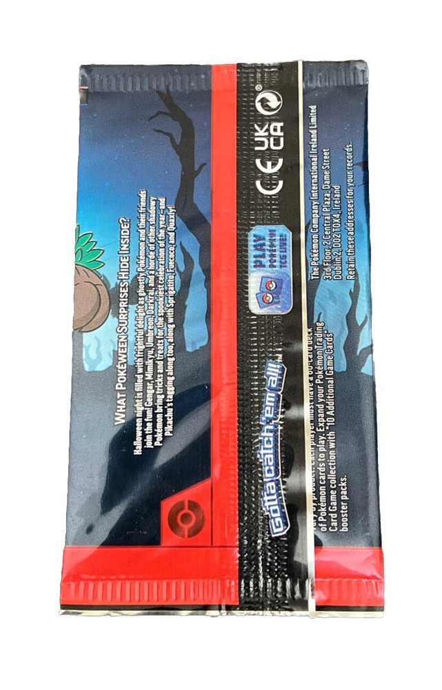 Get ready for some spooky fun with the Pokemon Trick Or Trade Booster Pack! This factory-sealed pack contains 3 cards, including the popular character Gengar, and is perfect for any Pokemon TCG collector or player. The cards are made of high-quality card stock and are in English language only. Celebrate Halloween with this special Pokemon League event and add some spooky touches to your collection. This pack is authentic and contains cards from the Trick Or Trade set. Suitable for ages 6 and up, this pack is a must-have for any Pokemon TCG fan.