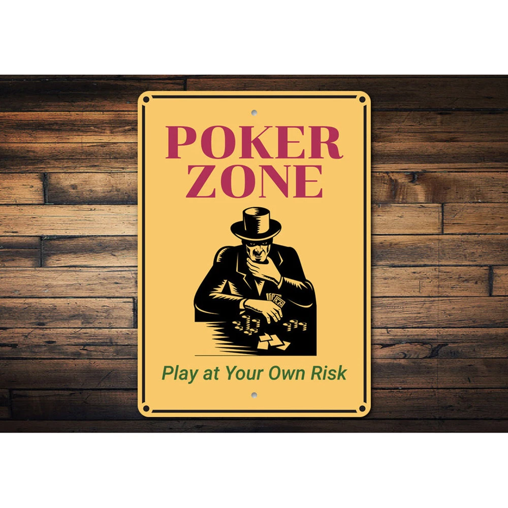 The Lizton Sign Shop Product Description Poker Zone, Play at Your Own Risk, Playing Cards, Gaming Room Metal Sign **there may be slight variations in color and text spacing, however your sign will be very similar to the image above. Quality Aluminum Street Signs Sign Information Aluminum Brand New Sign Comes with rounded corners and pre-drilled for easy hanging. We use the highest quality materials - 100% USA-made! Great Gift Idea - Our signs truly make a one of a kind gift. Personalize the sign with the text you want to add. Custom text for the sign can be sent to us via email. A BRAND NEW SIGN!! All of our street signs are made of premium materials. The sign itself is made of aluminum and will never rust providing years of enjoyment indoors and outdoors. No Cheap plastic!! The Lizton Sign Shop specializes in quality personalized custom aluminum signs for any occasion. These make the perfect sign for any man cave, office, basement, garage, college dorm, kids bedroom, game room, bar, pub, tavern or countless other places. *Colors may vary slightly from one computer screen to the next but the image should be very close. All content and designs are subject to copyright and may not be reproduced in any form. Payment Methods We would prefer payment to be made through paypal but we also accept all major credit cards. If you select the credit card option please contact us after you make your purchase and we can walk you through the steps to make a secure payment. Return Policies We will accept returns within 30 days of the purchase date. The buyer is responsible for any costs to return the item or items. Returns will only be accepted for items that were damaged in shipping or if we made an error in the manufacturing of your item, i.e. spelling error.