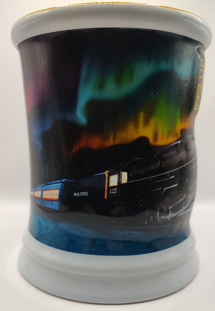Polar Express Coffee Mug. Microwave and dishwasher safe. I don't think I have ever used it, it's still in new condition. Sorry about the lighting.