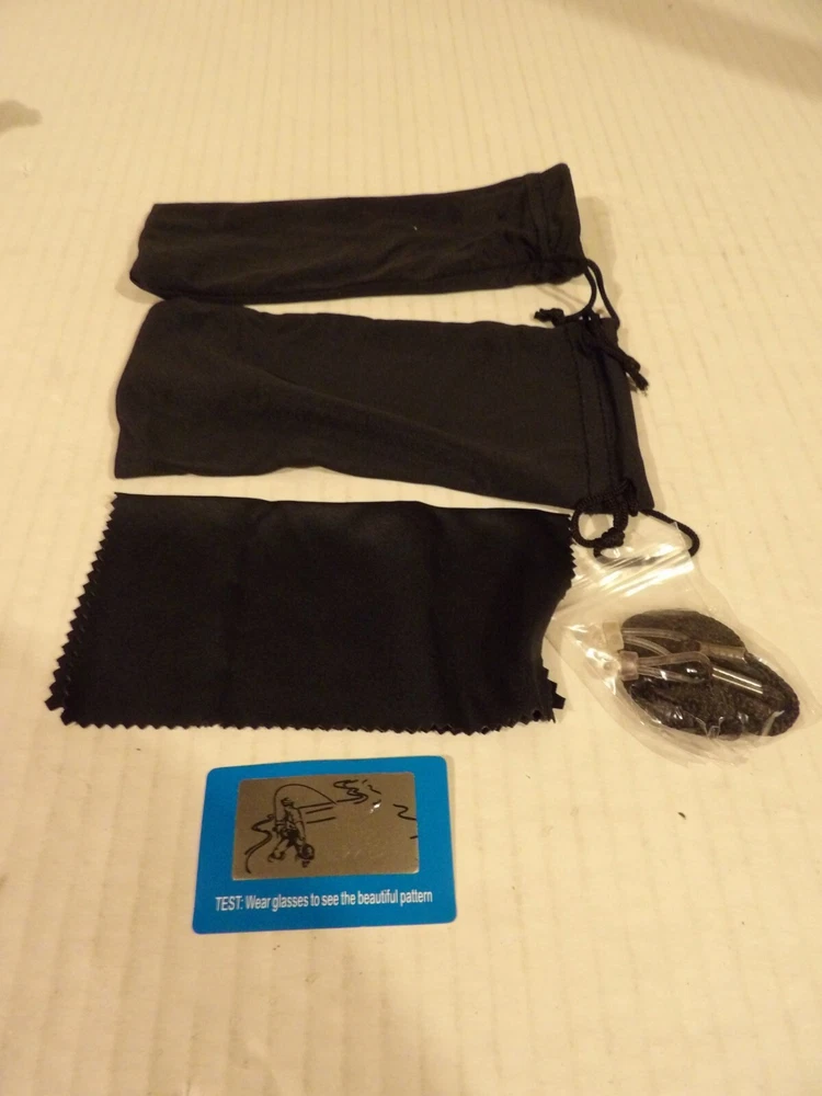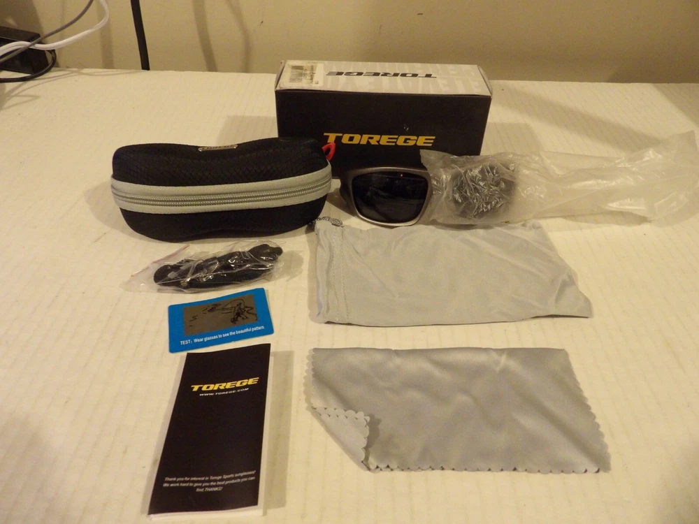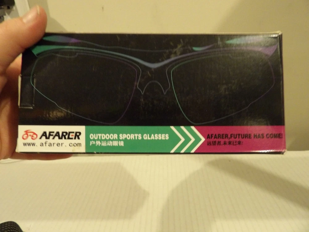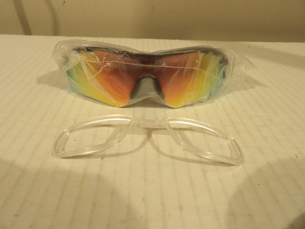 This is a new in package pair of sports polarized sunglasses. It comes with 5 interchangeable lenses, hard case, cloth case, cleaning cloth, lens case, and more. Please see pictures.