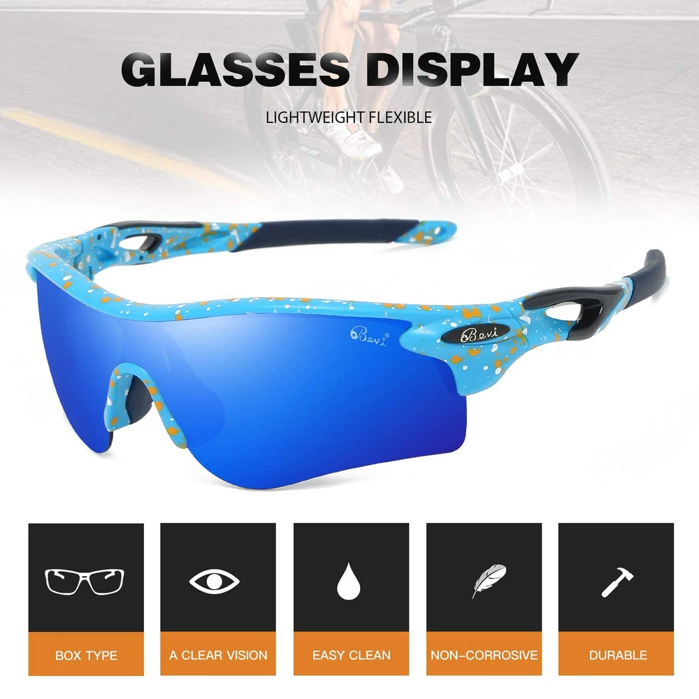 Product Dimension– Lens Width: 2.6 inch, Lens height: 1.81 inch, Temple Length: 5.19 inch, Nose Bridge: 0.71 inch ( Please be sure that size is fit your face ) New material -TR90 was produced through Swiss technology as a thermoplastic material that is incredibly durable, flexible, and lightweight. Glasses made with TR90 are extremely comfortable because they have a flexible quality. Since they are flexible, they can bend under pressure and contour your face comfortably. OUTSTANDING LENSES – polarized lenses are comparable to the thickness you would find on much higher priced sports eyewear. TAC (Triacetate) lenses pass a double decentering test to ensure there is no optical distortion which can cause eye strain and headaches. Polarized sunglasses help reduce glare caused by reflected light to improve vision and comfort. SOFT NOSEPAD – Let your nose feel comfortable while wearing Sports Sunglasses for cycling, running, fishing, golf. Please do not Place the sunglasses next to the flame to avoid melting. Please do not Prolonged exposure in the salt water or cleaning water with chemical. Please do not wipe the lenses with finger directly. A cleaning cloth is the best choice for cleaning lenses.
