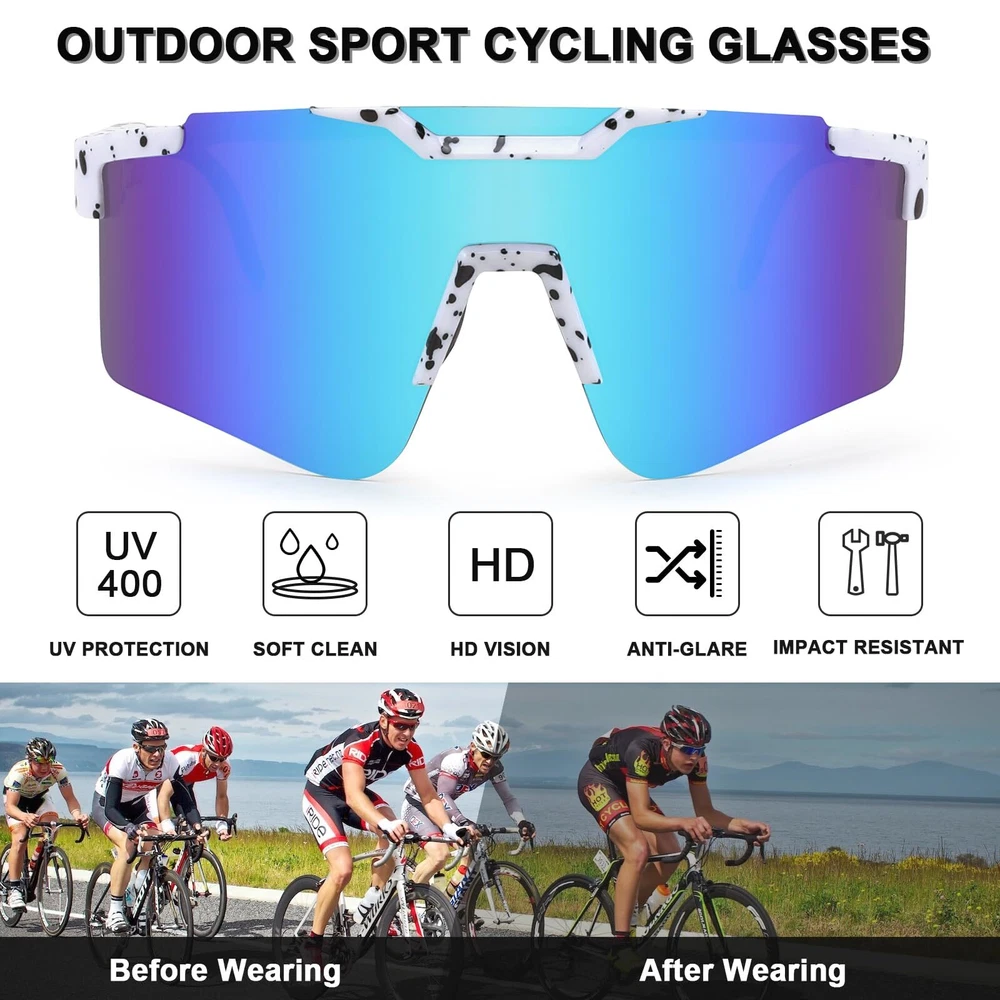 Description AFTER-SALES GUARANTEE - We are committed to product quality, never stop, providing 100% quality commitment. If you have any questions about our products or services, please send us an email and we will be happy to assist you. If you are not satisfied with the product, we will refund or replace it. You won't be at risk of trying. PLEASING AND DURABLE - sports sunglasses feature cool frame design with a wide field of vision. It is visually appealing and has unisex design, with rich color choices of frames and lenses. Polycarbonate lenses and frames are impact-resistant and long-lasting. PREMIUM LENSES - Using high-definition coated lenses, excellent optical quality, can restore true colors and reduce reflections. UV400 protective coating, blocking 99.99% of harmful UVA and UVB rays, can eliminate glare, reduce eye fatigue, and make the scenery clearer and softer, Protect your eyes from sand, wind and sun damage. STYLISH APPEARANCE - These cycling sunglasses skillfully blend fashion and practicality, designed for young people. Its modern look not only enhances your personal style, but also shows your vigor and fashionable taste while protecting your eyesight. PERFECT ADAPTATION - No matter which outdoor activity you are passionate about, these glasses provide reliable protection for your eyes in different scenarios, allowing you to focus on enjoying your sport. Is the ideal sports accessory! WIDE APPLICATION - This wind proof glasses are ideal for biking ,cycling, driving, running, fishing, racing, golf, skating, climbing, trekking,baseball,volleyball and other outdoor activities. And this sunglasses is not only suitable for adult, but also for kids.