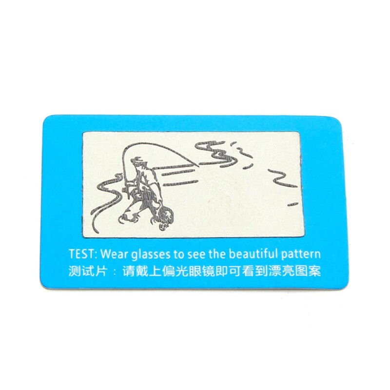 brand new and high quality Features: Wear polarized sunglasses to see the test card; you will see the pattern This is the most convenient and fast way to judge whether the polarized sunglasses is authentic Take it and distinguish the real polarizer Specification: Material: Plastic Dimension: app.6cmx4cm/2.36''x1.57'' Main Color: Blue Quantity: Pc Note: 1.Please allow 1-3cm error due to manual measurement. pls make sure you do not mind before you bid. 2.Due to the difference between different monitors, the picture may not reflect the actual color of the item. Thank you! Package includes: x Polarized Test Card (without retail package)