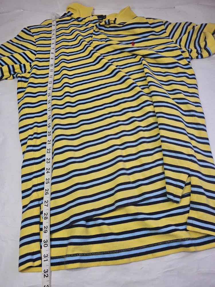 Polo By Ralph Lauren Mens XL Yellow Blue Short Sleeve Polo Golf Shirt. Shirt has been washed and cleaned.