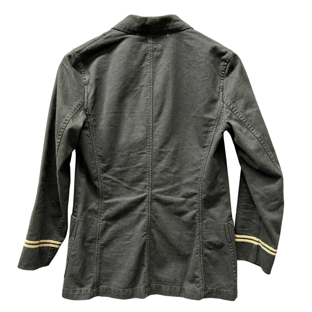 Polo Ralph Lauren Blazer Womens 4 Black Denim Military Double Breasted Gold Piping + Pockets Nautical Buttons Cotton Linen Very good condition, see all pictures for views. •Pit to pit: 17" •Shoulder to hem: 27" Ships out same day or next open postal day. Thank you for your purchase, we appreciate you!