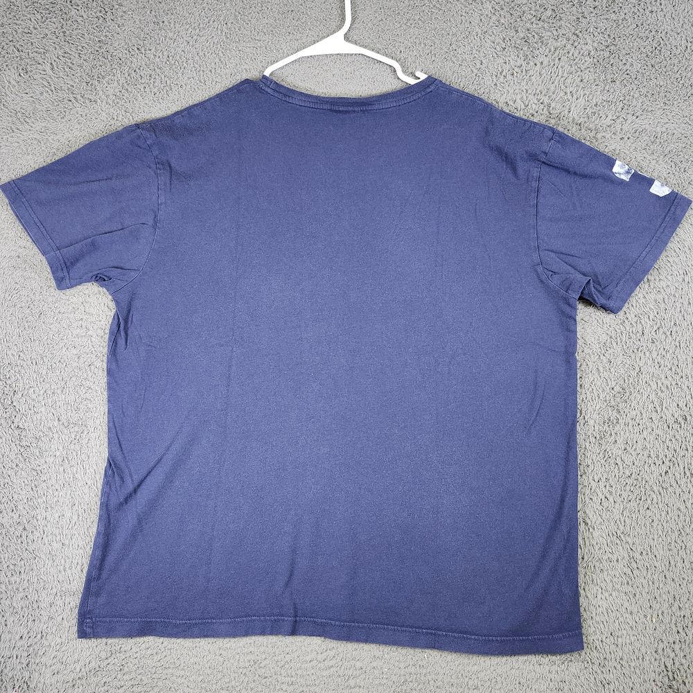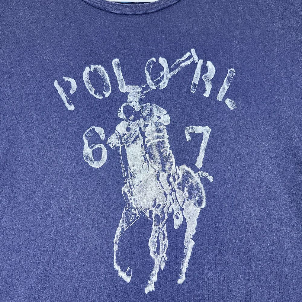 Classic Polo Ralph Lauren t-shirt in navy blue featuring a large distressed big pony logo graphic on the front. Short sleeves, crew neck, 100% cotton construction. The graphic shows signs of intentional distressing for a vintage look. Number 67 detail incorporated in design. Color: Blue Department: Men Type: Polo Performance/Activity: Polo, Casual Wear, Sport Spectating, Equestrian, Leisure Sleeve Length: Short Sleeve Fabric Wash: Dark Character: Polo Player, Equestrian, Horseman, Rider, Jockey Pattern: Graphic Print Fit: Classic Material: 100% Cotton Keywords: polo ralph lauren, big pony, navy blue, graphic tee, distressed logo, cotton t-shirt, 67, polo sport, classic polo, mens tshirt all items have been cleaned and disinfected we stand behind all we sell so please contact us if you have an issue with any order