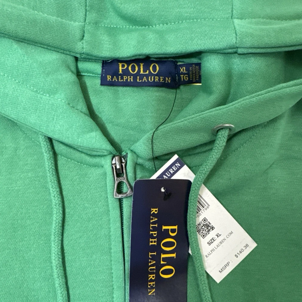 Elevate your activewear collection with this two-piece Polo Ralph Lauren tracksuit in a stunning green color. The set includes a hoodie and joggers, both made of comfortable and lightweight fleece material. The pullover closure and adjustable waist ensure a perfect fit for any occasion, whether it's a casual day out or a formal event. The tracksuit features a solid pattern with accents of a zip and the iconic Ralph Lauren logo. It's machine washable and easy to care for, making it a perfect choice for all seasons. The set is ideal for various activities, including cycling, running, gym training, and more. Get ready to look stylish and comfortable in this Ralph Lauren tracksuit.