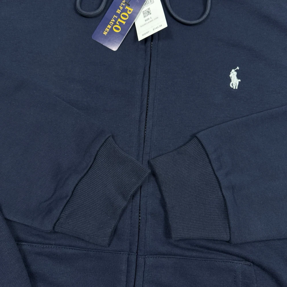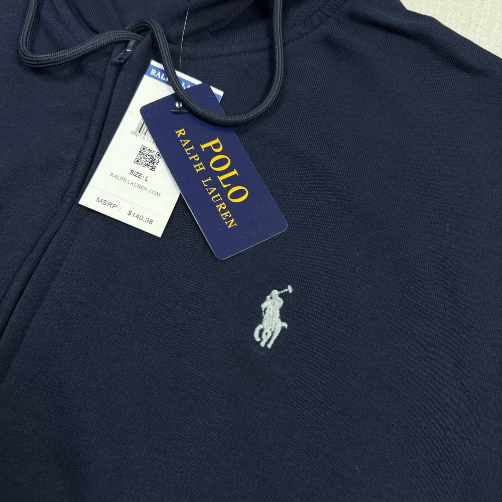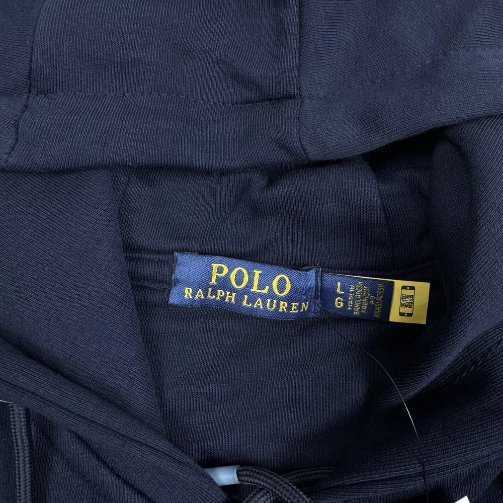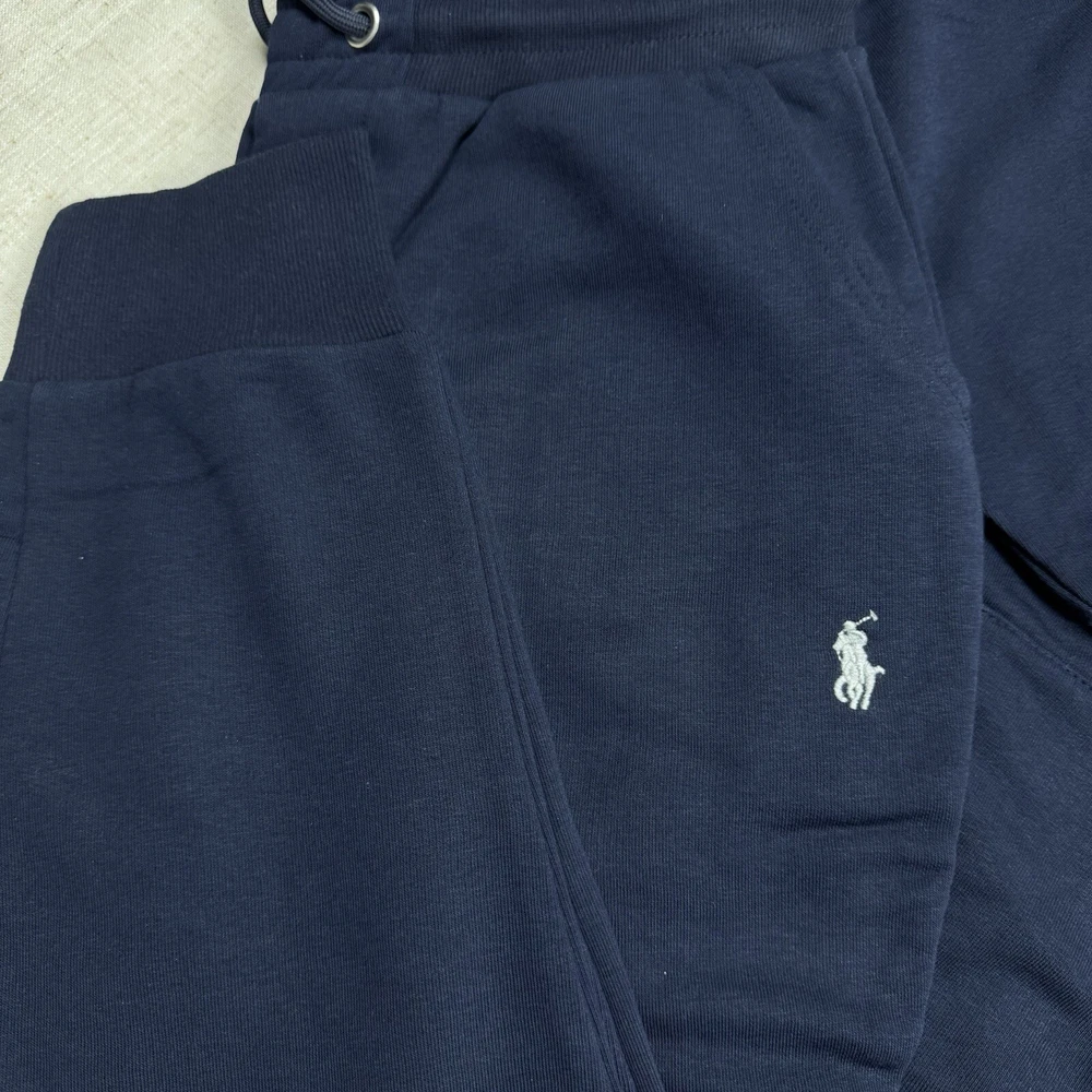 Elevate your activewear collection with this two-piece Polo Ralph Lauren tracksuit in a stunning Navy blue color. The set includes a hoodie and joggers, both made of comfortable and lightweight fleece material. The pullover closure and adjustable waist ensure a perfect fit for any occasion, whether it's a casual day out or a formal event. The tracksuit features a solid pattern with accents of a zip and the iconic Ralph Lauren logo. It's machine washable and easy to care for, making it a perfect choice for all seasons. The set is ideal for various activities, including cycling, running, gym training, and more. Get ready to look stylish and comfortable in this Ralph Lauren tracksuit.