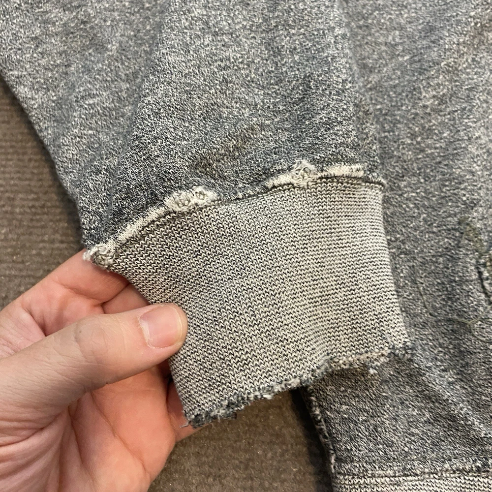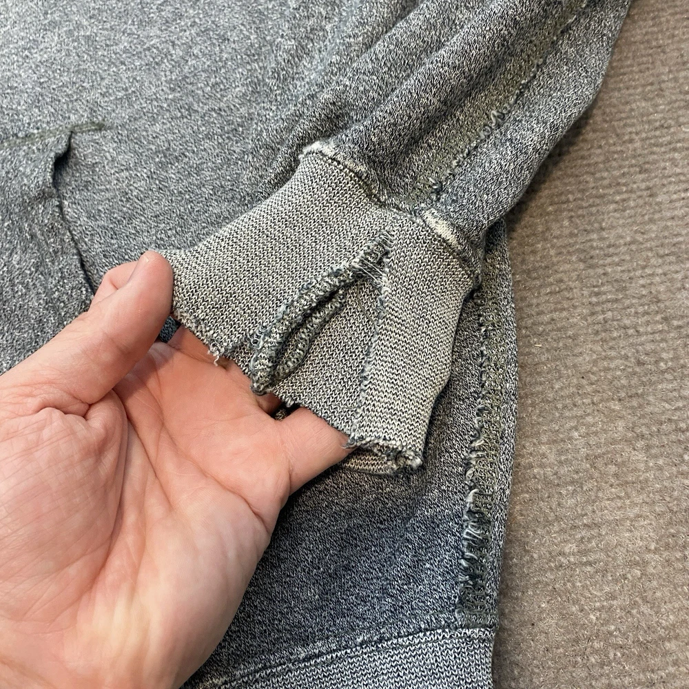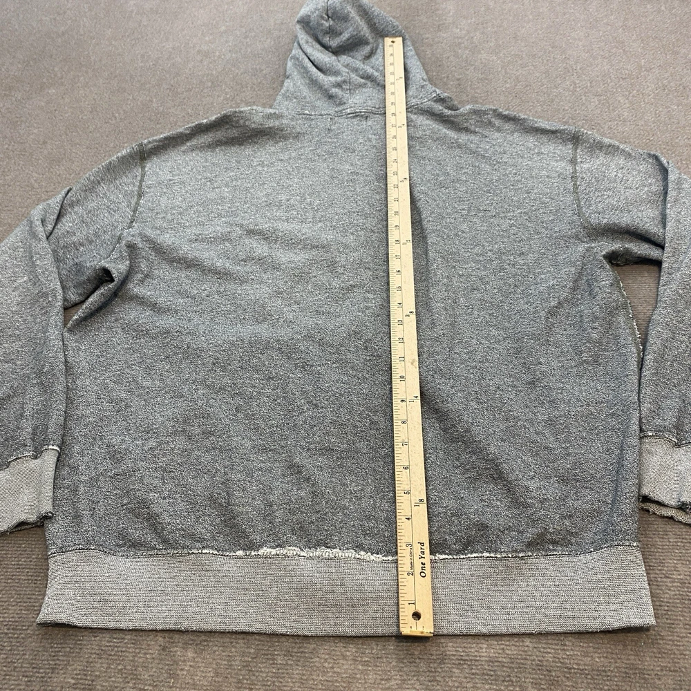 Hoodie is in distressed condition, it looks like it may have been factory distressing but unsure. Lot of fabric wear around the cuffs and a pin hole on the back shoulder. Check out our store Retro-Lab Thousands of similar items. Shipping is set to automictically discount on orders of more than one. $1.50 for each item after the first. We do our absolute best to try and document and photograph any flaws in the items, in case we miss something we are happy to accept returns. 30 day free returns on all clothing items, for any reason. All returns are free to you, but expensive to us so please review the measurements prior to purchase. Item measurements are approximate and located at the end of the photos. Pre-owned clothing sizing can change due to washing and wear. Offers can not be combined with coupons. All Items will be shipped with a tracking # for your verification. We ship out daily, so you can expect fast delivery! If you have any questions at all please email us.