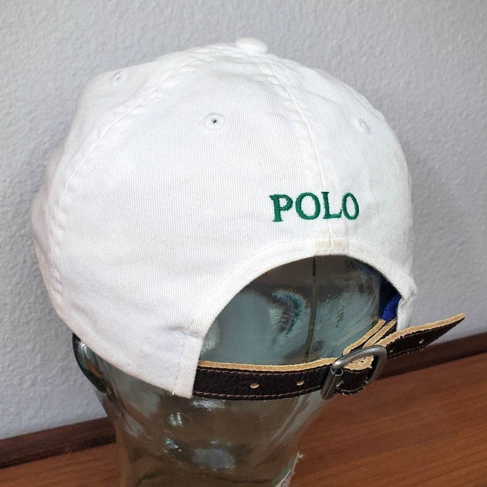 Polo Ralph Lauren Mens Green Pony White "SQ" 3 Ralph Lauren Boys Baseball Hat In great gently used condition. No rips, holes or major stains Minor marks on the back and interior, it could use a deeper cleaning if desired. Adjustable leather strap (SEE PICS AS PART OF MY DESCRIPTION & FOR SIZING!) *mens sports hat *mens baseball hat *polo horse hat *mens cotton sports ball cap