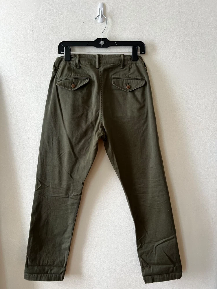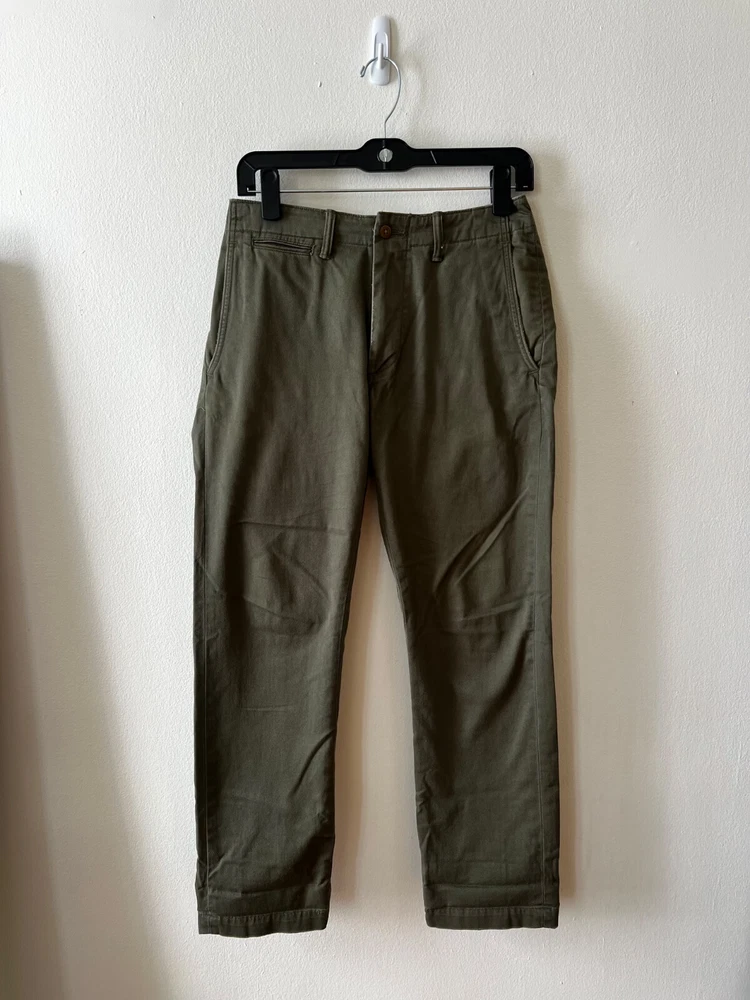 Polo Ralph Lauren Olive Chino Pants in very good condition Measurements: Waist - 15.5in (39cm) Inseam - 28in (71cm) Leg Opening - 7in (18cm) Rise - 10in (25cm) Thigh - 9in (23cm) Knee - 8in (20cm)