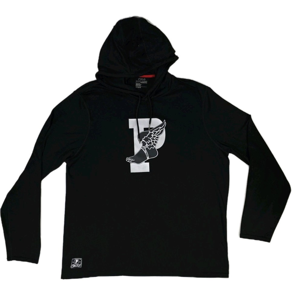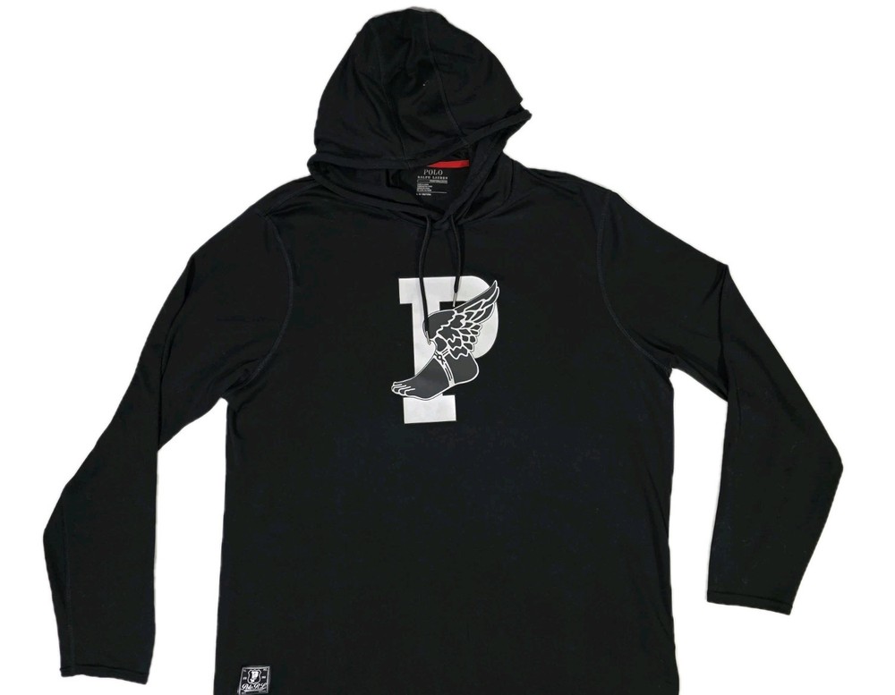 Polo Ralph Lauren Hoodie P Wing Logo Performance Jersey Layer Mens Size L Black Measures Approx: Total Length - 28 inches Arm Pit to Arm Pit - 23 inches Hoodie is Very Clean and in Well Kept Condition! Only issue to note is a small 1 inch thread pull on lower middle front (as shown in pics). Please see pics for details...