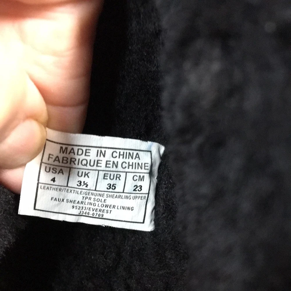 Polo by Ralph Lauren Big Kid Everest Boots Black Leather w/ Shearling Size 4. Black patent leather with red and black buffalo plaid flannel. Black top cuff is shearling. Inside lining is faux shearling. Boot shafts are floppy and are stuffed with paper to make them stand for pics. Preowned excellent condition with a few light scuffs and slight creasing on the leather. From a non-smoking home Bid Kid Size 4 Black leather with red and black buffalo plaid No box