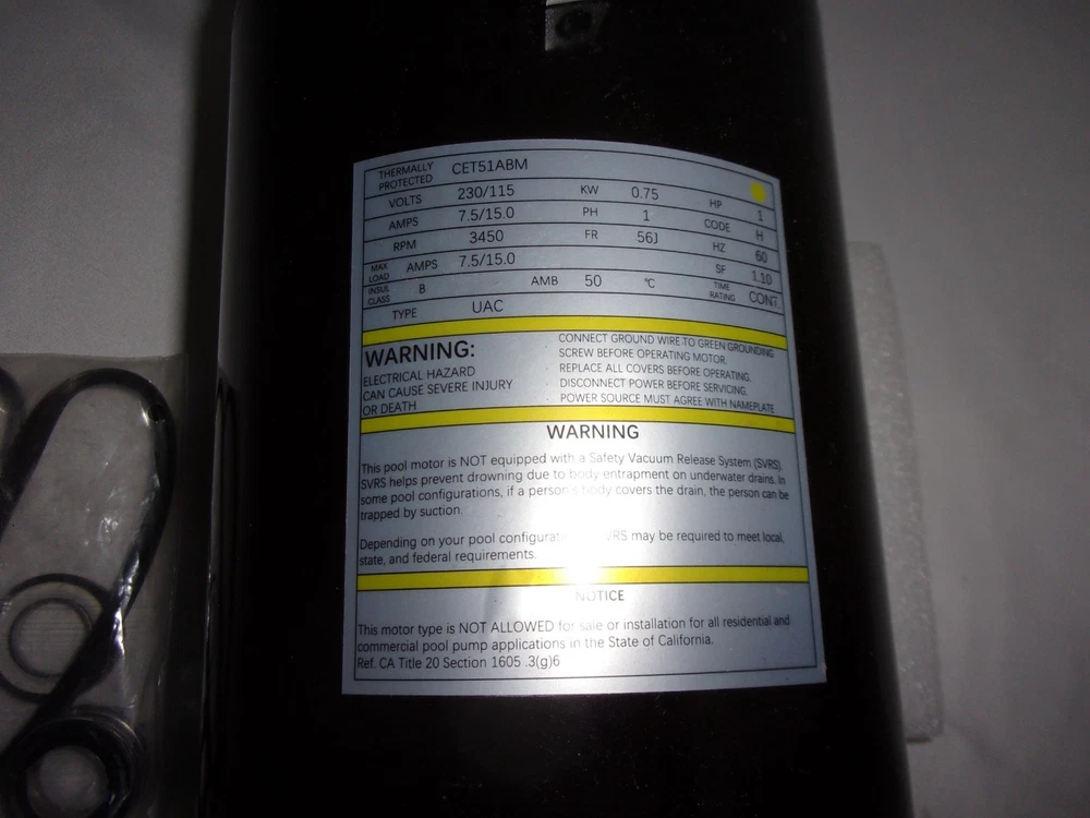 1.5 HP UST1152 Pool Pump for Smith Century Hayward Motor 115/230V 3450 RPM