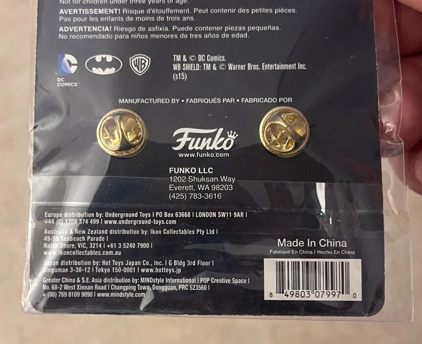 This product is a set of two collectible pins featuring Batman and Catwoman from DC Comics. Produced by Funko, the pins are part of the Pop! Pins series and are made of metal. The pins are standard size and come in original packaging. They are not autographed or vintage, and are suitable for ages 3 and up. The pins are part of the DC Universe franchise and feature characters from the Warner Bros. Animation movie "The Batman". They are common and not customized. These pins are in new unused condition, please see ALL photos for a better idea on condition and any details to the pins.