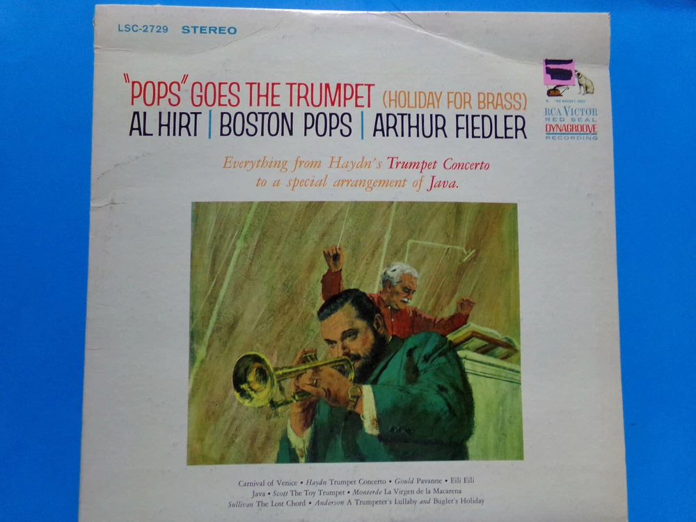 Pops Goes The Trumpet Al Hirt Boston Pops Arthur Fiedler RCA Victor LSC 2729 33 1/3 rpm NOTE: Note: cover has shelf wear, crease, sticker, album has scuffing PLEASE NOTE THE FOLLOWING: PLEASE PHOTOS FOR CONDITION OF LABELS Condition: all records that I have listed will be from local estates and are used. They are not in mint condition. I have not played or tested any records unless stated above. Each may have scuffing, scratches , dust, fingerprints, wear, fading, tears, writing on label and/or sleeve and other issues . May not have an inner sleeve. Covers may have scuffing, fading, tears, stains and other issues. _________________________________________________________ Please note that I am not a professional grader. I can only provide information about the items' conditions and not about a certain level of grading. SHIPPING: 1st album $6.95, .75 cents each additional paid together.