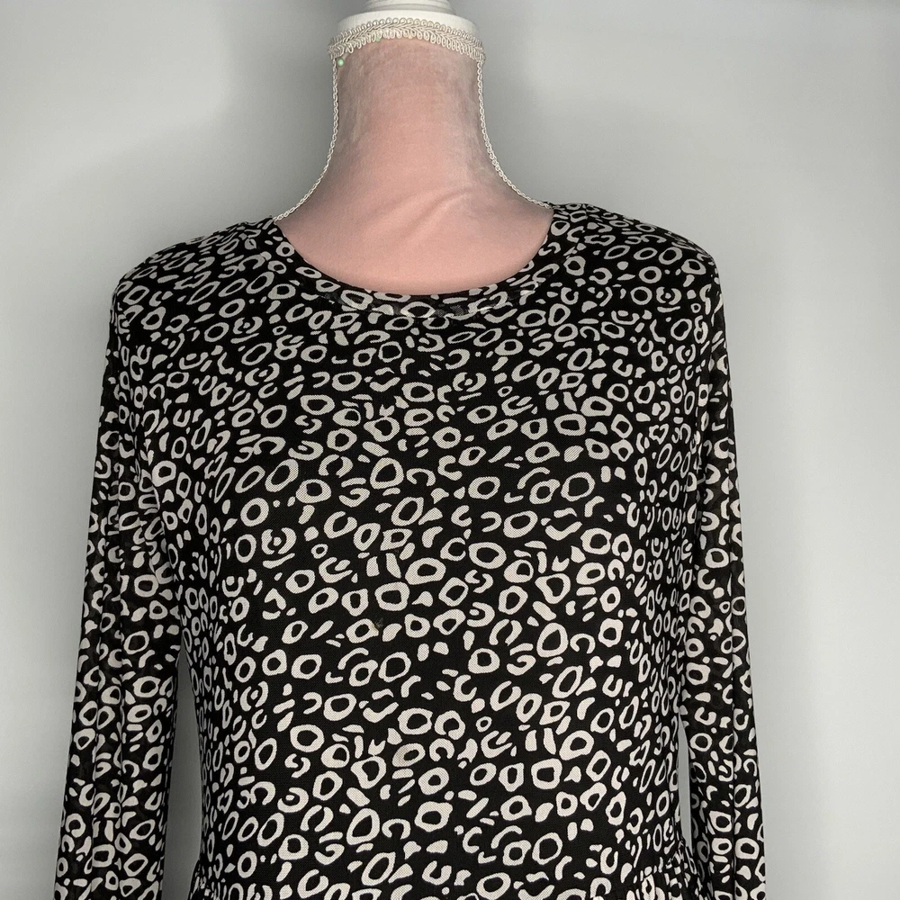 Popsugar Mesh Lined Dress Comfortable ~ Size Large ~ Animal Print Black & White. Excellent condition.