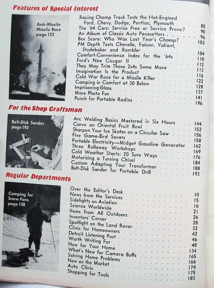 Popular Mechanics magazine, January 1964 issue, from Hearst Corporation. 228 pages. Exact item as pictured, it is not a stock photo. Contents page is in 2nd picture. We'd call this a Fine+ grade copy, small spine tears, few defects, tiny chip at spine corner, very presentable, solid. Complete, no writing. Very nice overall. Feel free to ask questions if you have them - we offer discounts on multiple purchases! GRADING: We grade our comics and magazines according to the Overstreet guide as noted on eBay. Click HERE to see that page. If you are unsatisfied with your purchase, PLEASE let us know. We strive to be easy to work with! CLICK HERE TO SEE ALL THE VINTAGE MAGAZINES IN OUR EBAY STORE! LOTS of rare Saturday Evening Post, Life and other titles! Click here to visit our eBay Store and save on shipping with ONE INTERNET STOP! With over 1500 different items to choose from, we have something for every kid on your list (even the big ones)! Buy with confidence from us -- we have over 15 years experience selling on eBay and other venues!