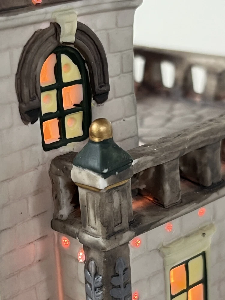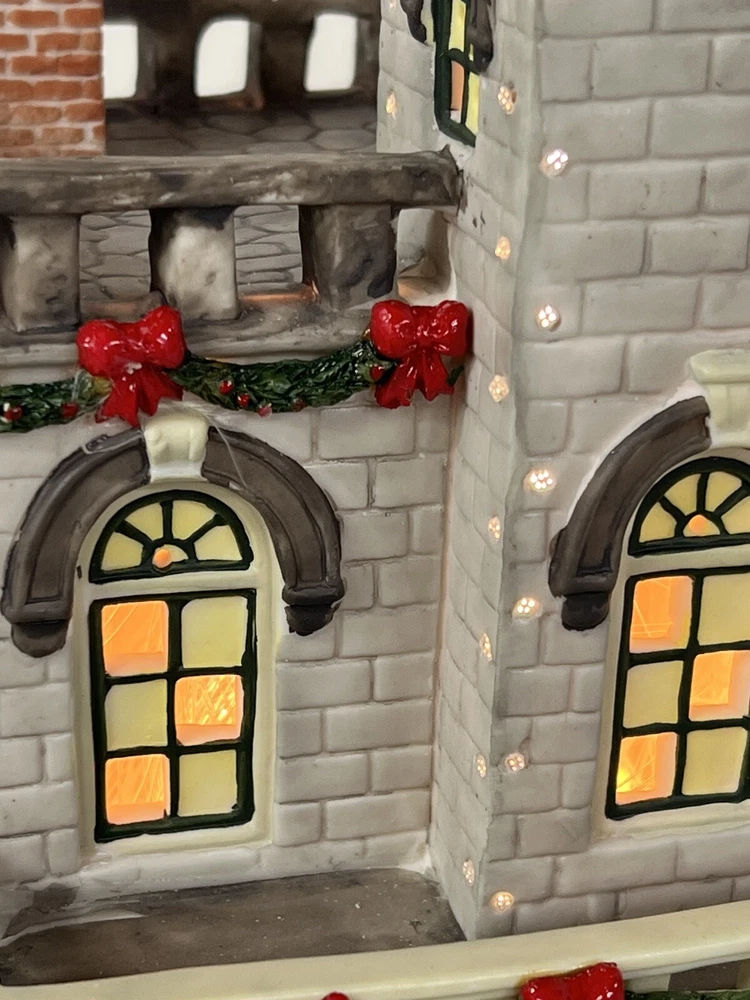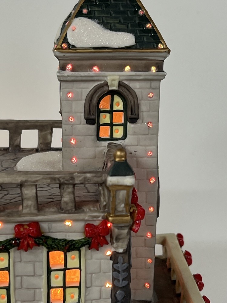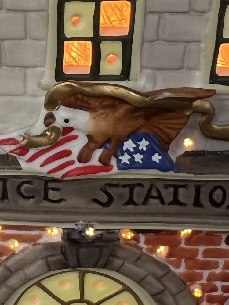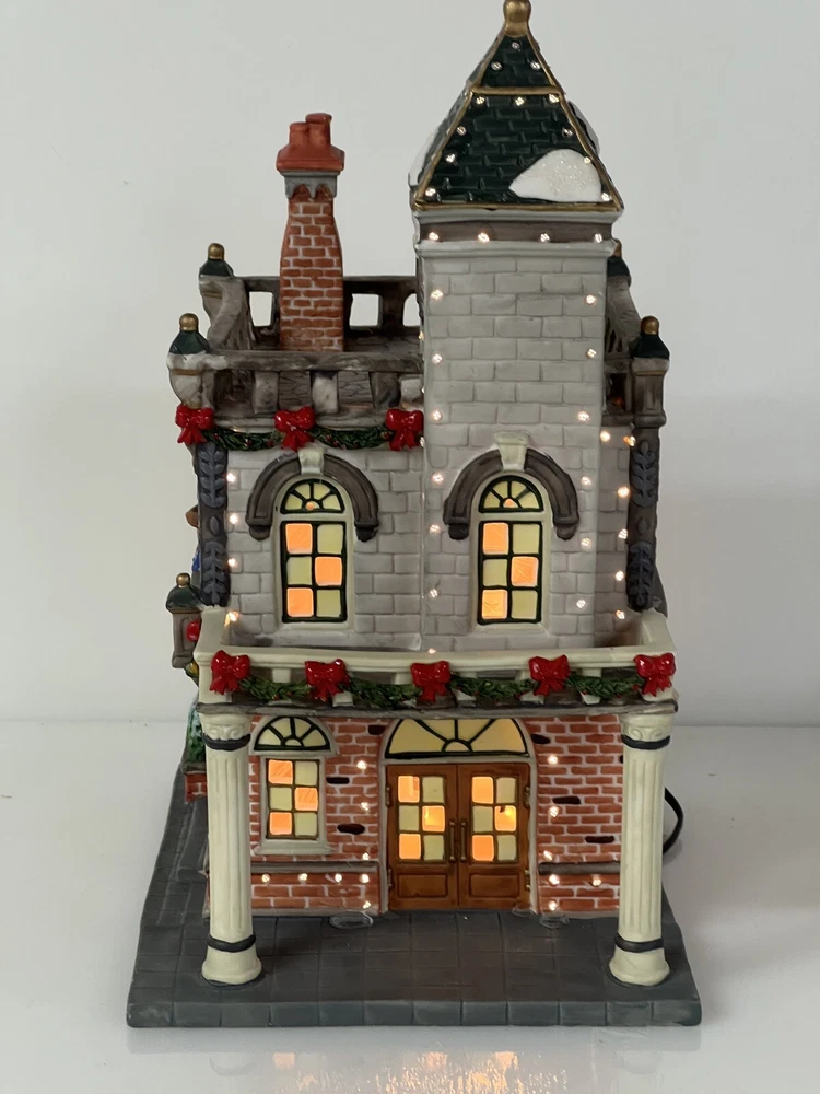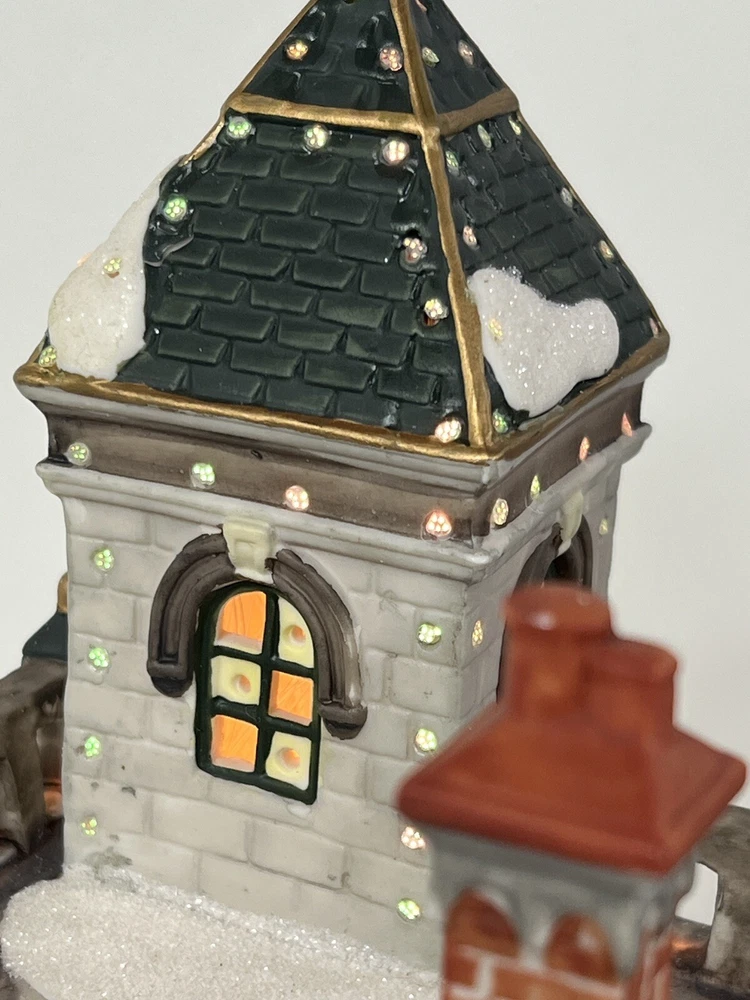This is a medium-sized O’Well Novelty porcelain Christmas village piece from 2005. It features an illuminated, color-changing 3D effect of a whimsical fiber optic police station. The hand-painted, American-style house is suitable for seasonal display in any room. It comes in a box with a 12-volt adapter, part of the Deluxe Fibre Optic House collection. Perfect for collectors of holiday decor. Absolutely perfect pristine condition! Color changing lights , incredible detail , comes with power cord , all original packaging and original box ! Just a beautiful piece to display.