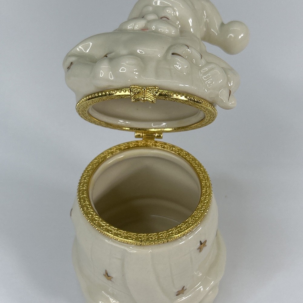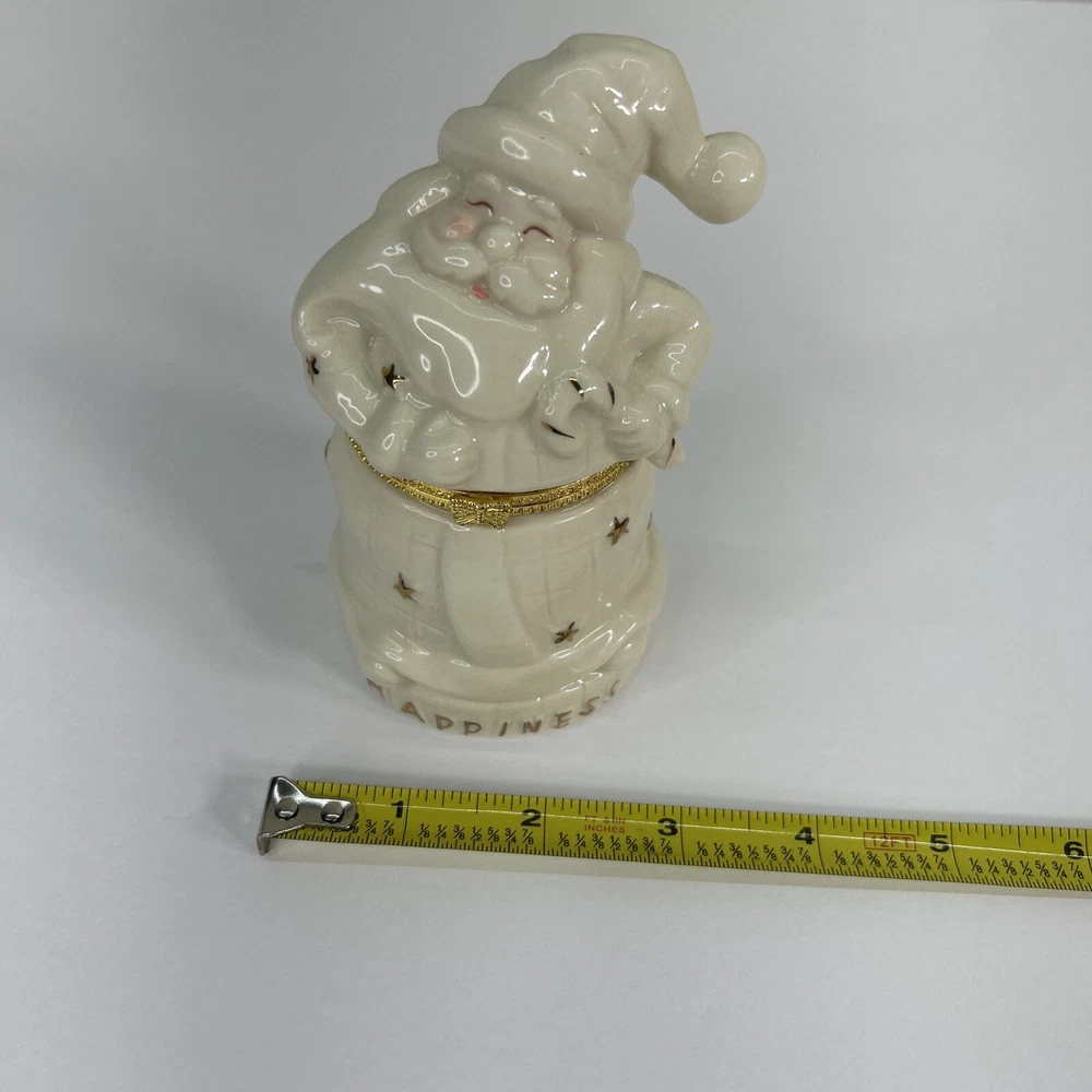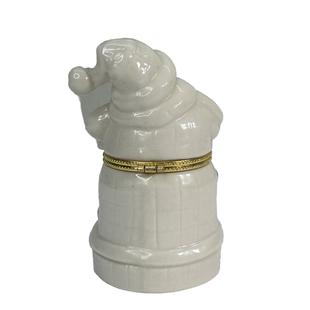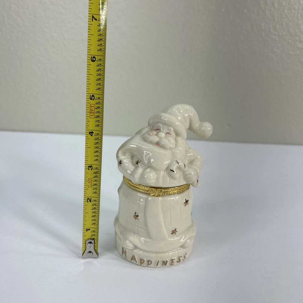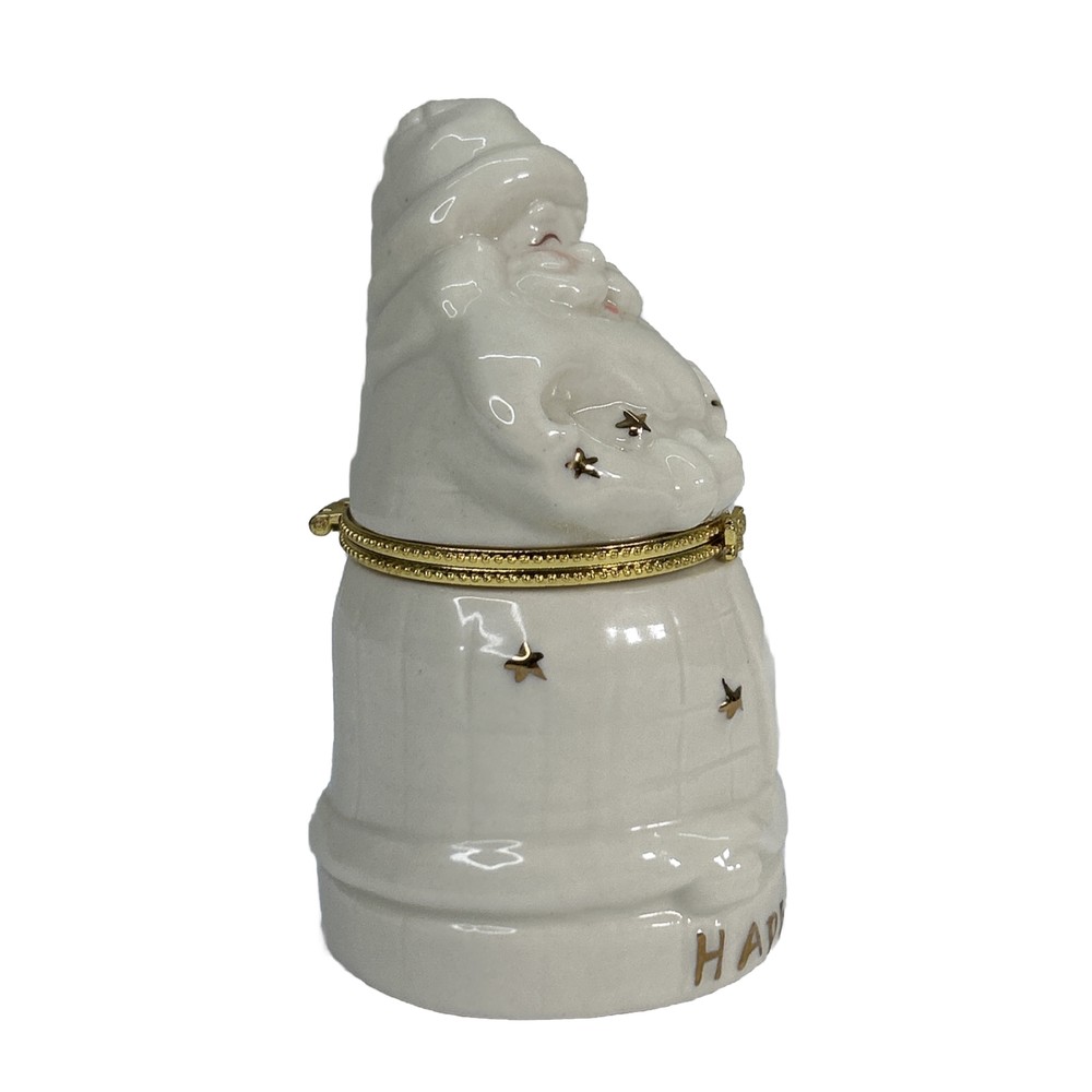 This beautiful porcelain hinged trinket box featuring Santa Claus is perfect for adding a festive touch to your home decor this holiday season. Made of high-quality porcelain and finished in gold, this trinket box is perfect for storing small keepsakes and treasures. The intricate details on the box make it a great collector's item for those who love Santa Claus and Christmas. The box comes in a beautiful gift box, making it a great gift idea for your loved ones. The trinket box is ideal for collectors who love to add unique items to their collection. The box has a hinged top that opens to reveal a small space for your treasures. The gold finish gives it an elegant look, making it a great addition to any home decor. With its vibrant colors and intricate details, this trinket box is sure to bring happiness and joy to your home this holiday season.