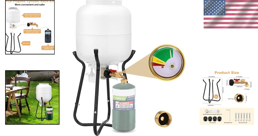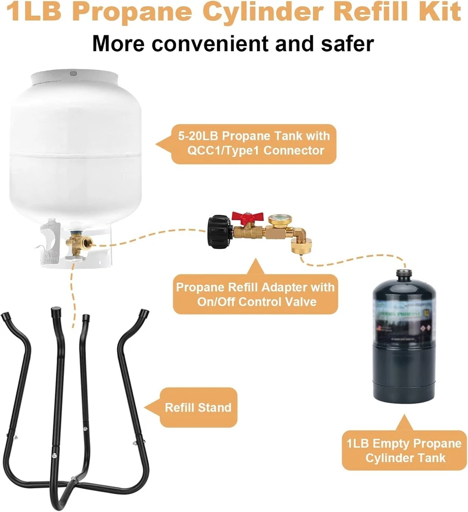 Portable 1lb Propane Cylinder Refill Adapter with Color-Coded Gauge & Valve ‹ › ‹ › ‹ › ‹ › ‹ › ‹ › ‹ › ‹ › ‹ › ‹ › ‹ › Portable 1lb Propane Cylinder Refill Adapter with Color-Coded Gauge & Valve Features: Constructed from high-quality solid brass for durability and reliability. Includes an On/Off control valve for ease of use; no tools required for installation. Comes with a removable propane refill stand made of painted iron and 304 stainless steel components, ensuring scratch, rust, and corrosion resistance. Sturdy support structure designed to hold 5-20lb propane tanks securely during the inflation process. Color-coded dial gauge for easy monitoring of fuel levels and detection of leaks at a glance, even in low light conditions with its luminous pointer. Safety is paramount; refill your 1lb propane cylinder outdoors, away from flames and sparks. Benefits: Convenience: Easily convert from a larger 20lb propane tank to a compact 1lb cylinder with ease. Optimal safety features with a color-coded gauge to monitor levels and detect leaks. Durable construction ensures longevity and performance even with regular use. Lightweight and portable design for easy transportation and set-up. The refill kit includes essential tools for a hassle-free experience. Why Choose Our Propane Cylinder Refill Adapter? Discover the ultimate solution for your propane needs with our Portable 1lb Propane Cylinder Refill Adapter. Designed with safety and convenience in mind, this adapter allows for effortless refills from larger tanks while providing you with the peace of mind that comes from using high-quality materials and engineering. The added benefit of a removable stand and color-coded gauge ensures that you have everything needed for a reliable, user-friendly experience. Never worry again about running out of propane mid-cooking or during a camping trip. Equip yourself with our refill adapter and enjoy the freedom it brings. Don’t miss out on this essential outdoor accessory! Order yours today and enhance your camping and cooking experiences! Shipping Free & Fast Shipping - We offer free shipping to most of the USA with a normal delivery time of 3-7 days. However, due to the current situation, additional delivery time (up to 3 weeks) may be required for some items. Alternative Carriers - We may use alternative carriers (e.g. USPS, FedEx, UPS, etc.) to ensure your package arrives safely and on time. Due to the use of multiple carriers, we are unable to provide a tracking number automatically. Handling Time - Orders are processed and shipped within 1-2 business days of receiving cleared payment. Shipping Restrictions - Shipping to Alaska, Hawaii, Puerto Rico, Guam, and other US territories may incur shipping charges or delivery restrictions. Please contact us before ordering, or your order can be refunded/cancelled. State Restrictions - There may be restrictions based on your state of purchase. For example, certain items may not be shipped to California due to state regulations. Contact for Tracking Updates - If you require tracking updates or have any concerns about the delivery of your order, please feel free to contact us, and we will be happy to assist you. Return 30-Day Hassle-Free Returns - We want you to be completely satisfied with your purchase. If you are not, you can return the item within 30 days of receiving it for a full refund or exchange. Easy Return Process - To start a return, simply contact us and we will provide you with a prepaid return shipping label and detailed instructions. Restocking Fee - There are no restocking fees for returns. However, the buyer is responsible for return shipping costs if the return is not due to a seller's error. Refund Processing Time - Refunds will be processed within 5 business days of receiving the returned item in its original condition. Payment We accept all major credit cards, PayPal, and Apple Pay for your convenience. Your payment information is secure and encrypted to ensure a safe and seamless transaction. Please complete your payment within 3 days of purchase to avoid any delays in shipping. Feedback Your feedback is extremely important to us. We strive to provide the best products and customer service possible. If you are satisfied with your purchase, please take a moment to leave us a positive review. If you have any concerns or issues with your order, please contact us before leaving negative feedback. We are committed to resolving any problems and ensuring your satisfaction. Contact Us If you have any questions or concerns, please feel free to reach out to our customer support team. You can contact us through the eBay messaging system. We are available Monday to Friday, 9:00 am to 5:00 pm EST, and we will do our best to respond to your inquiry within 24 hours. Thank you for supporting our small family business! UPC: Not Set Unit Quantity: 3.03 lb Set Includes: Propane Refill Adapter,Refill Stand,1LB Propane Bottle Cap,Allen Wrench,Sets of Screw,Tube Cap,Installation Manual Features: Easy Clean,High-quality solid brass,Easy to install,No tools required,Hand-wheel grip for tightening,Scratch resistant,Rust resistant,Corrosion resistant,Sturdy support structure,Stable during inflation,Color coded dial gauge,Approximate fuel level indication Type: Propane Refill Adapter Brand: Unbranded Number in Pack: 1 Handle Material: Brass Color: Brass Item Weight: 3.03 lb Size: Medium Head Material: Brass Finish: Painted Country/Region of Manufacture: Not Set Item Height: Not Set Item Width: Not Set Year Manufactured: Not Set Model: Not Set Number of Items in Set: Eight-Piece Style: Modern Manufacturer Warranty: Not Set MPN: Not Set Unit Type: lb Personalize: Not Set