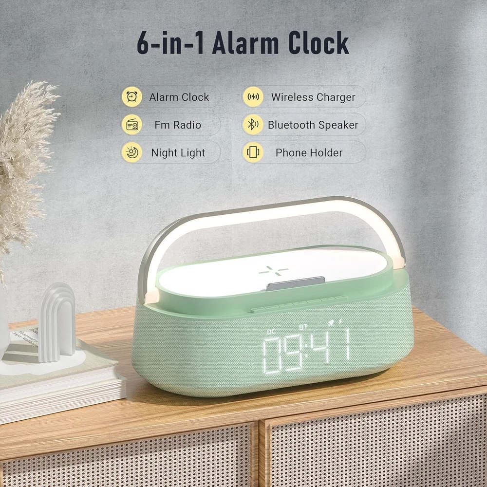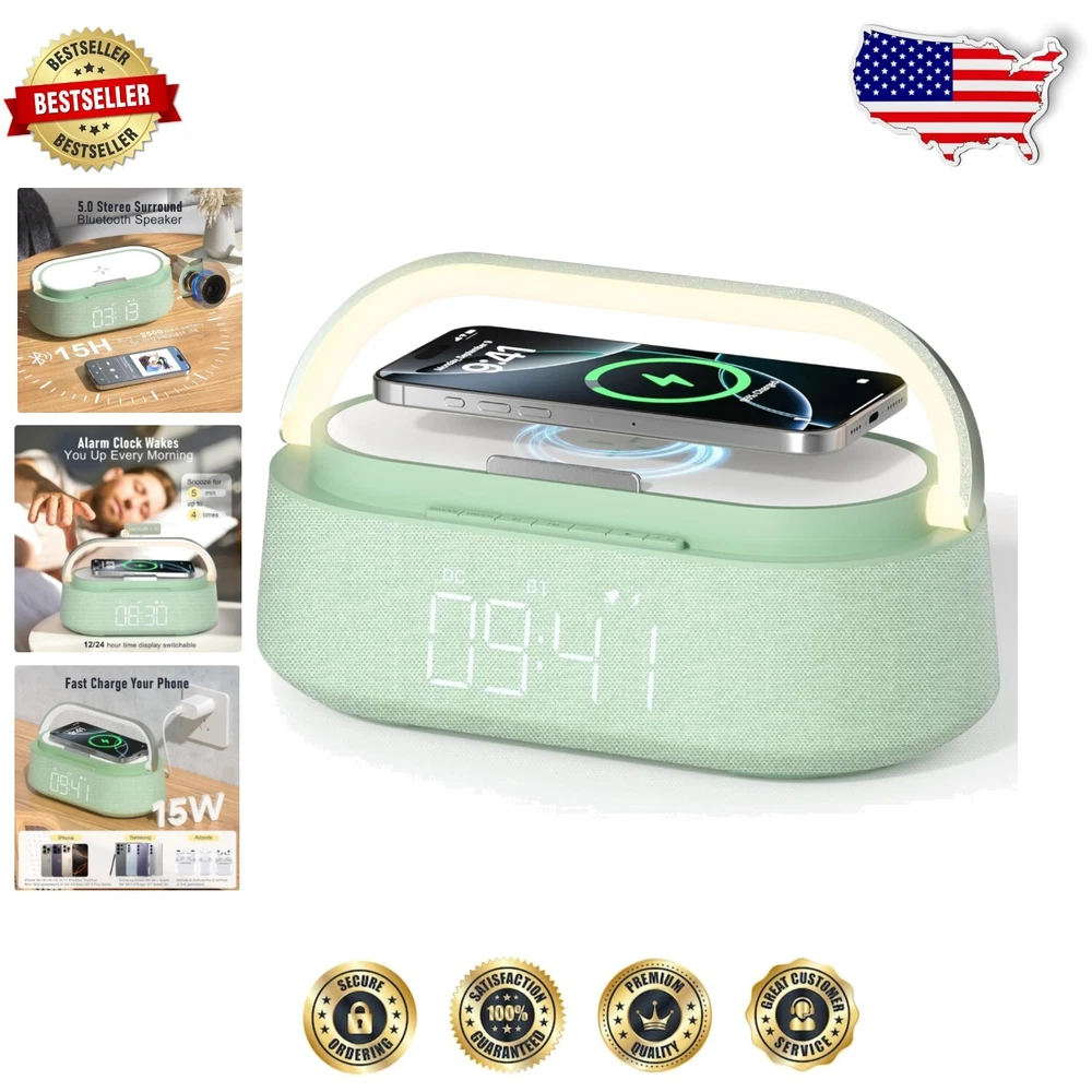 Portable 6-in-1 Alarm Clock with Bluetooth, Wireless Charging, and Night Light ‹ › ‹ › ‹ › ‹ › ‹ › ‹ › ‹ › ‹ › ‹ › ‹ › Portable 6-in-1 Alarm Clock All-in-One Functionality: A smart alarm clock that combines a Bluetooth speaker, wireless charger, FM radio, digital alarm clock, adjustable night light, and phone stand - all in one elegant design. 15W Fast Wireless Charging: Equipped with an intelligent charging protocol for fast, safe wireless charging to keep your devices powered, including the latest iPhone and Samsung Galaxy models. Effortless Wake-Up: Features an alarm clock with a 5-minute snooze mode, allowing for a short delay to ensure you rise refreshed. Exceptional Sound Quality: Enjoy clear sound and rich bass with dual speakers and the latest Bluetooth 5.0 technology for stable connections within 33 feet. Attractive Night Light: Touch-sensitive, adjustable night light with three brightness levels - creating the perfect ambiance for reading, working, or soothing children to sleep. Chic Home Decor: Crafted from high-quality materials, this alarm clock not only enhances your bedroom, living room, or kitchen decor but also makes an exquisite gift for any special occasion. Why Choose Our 6-in-1 Alarm Clock? Transform your space into a modern sanctuary with our Portable 6-in-1 Alarm Clock. This multifunctional piece is designed to meet your daily needs, seamlessly integrating aesthetics with advanced technology. Never deal with the hassle of multiple devices again; enjoy the convenience of wireless charging while listening to your favorite music or waking up gently to your personalized settings. Whether it’s a special occasion or simply to elevate your home decor, this alarm clock is the perfect blend of style and function. Make the smart choice today – order your Portable 6-in-1 Alarm Clock and embrace a new dawn of tranquility and efficiency! Shipping Free & Fast Shipping - We offer free shipping to most of the USA with a normal delivery time of 3-7 days. However, due to the current situation, additional delivery time (up to 3 weeks) may be required for some items. Alternative Carriers - We may use alternative carriers (e.g. USPS, FedEx, UPS, etc.) to ensure your package arrives safely and on time. Due to the use of multiple carriers, we are unable to provide a tracking number automatically. Handling Time - Orders are processed and shipped within 1-2 business days of receiving cleared payment. Shipping Restrictions - Shipping to Alaska, Hawaii, Puerto Rico, Guam, and other US territories may incur shipping charges or delivery restrictions. Please contact us before ordering, or your order can be refunded/cancelled. State Restrictions - There may be restrictions based on your state of purchase. For example, certain items may not be shipped to California due to state regulations. Contact for Tracking Updates - If you require tracking updates or have any concerns about the delivery of your order, please feel free to contact us, and we will be happy to assist you. Return 30-Day Hassle-Free Returns - We want you to be completely satisfied with your purchase. If you are not, you can return the item within 30 days of receiving it for a full refund or exchange. Easy Return Process - To start a return, simply contact us and we will provide you with a prepaid return shipping label and detailed instructions. Restocking Fee - There are no restocking fees for returns. However, the buyer is responsible for return shipping costs if the return is not due to a seller's error. Refund Processing Time - Refunds will be processed within 5 business days of receiving the returned item in its original condition. Payment We accept all major credit cards, PayPal, and Apple Pay for your convenience. Your payment information is secure and encrypted to ensure a safe and seamless transaction. Please complete your payment within 3 days of purchase to avoid any delays in shipping. Feedback Your feedback is extremely important to us. We strive to provide the best products and customer service possible. If you are satisfied with your purchase, please take a moment to leave us a positive review. If you have any concerns or issues with your order, please contact us before leaving negative feedback. We are committed to resolving any problems and ensuring your satisfaction. Contact Us If you have any questions or concerns, please feel free to reach out to our customer support team. You can contact us through the eBay messaging system. We are available Monday to Friday, 9:00 am to 5:00 pm EST, and we will do our best to respond to your inquiry within 24 hours. Buy it now and enjoy a pleasant shopping experience! UPC: Not Set Unit Quantity: 1 Charging Power Range: 15W Item Height: Not Set Item Length: Not Set Item Width: Not Set Connectivity: Bluetooth,Wireless Audio Inputs: None Smart Home Compatibility: None Surround Sound Formats: None Color: Green Features: Bluetooth,Touch Control,Wireless Charging,FM Radio,Snooze Function,Night Light,Fast Wireless Charging,Touch Adjustable Night Lights,Alarm Clock with Snooze Compatible Model: Universal Compatible Brand: Not Set Brand: Unbranded Model: Bluetooth Speaker with Charger Type: Bluetooth Speaker System Configuration: 2.0 Channel MPN: Not Set RMS Power: 15 W Unit Type: lb Battery Capacity: None Item Weight: 2.44 pounds Manufacturer Warranty: Not Set Country/Region of Manufacture: Not Set Material: Imported ABS+PP+Hardware Plug Regional Fitment: Not Set Shape: Rectangular Year Manufactured: Not Set