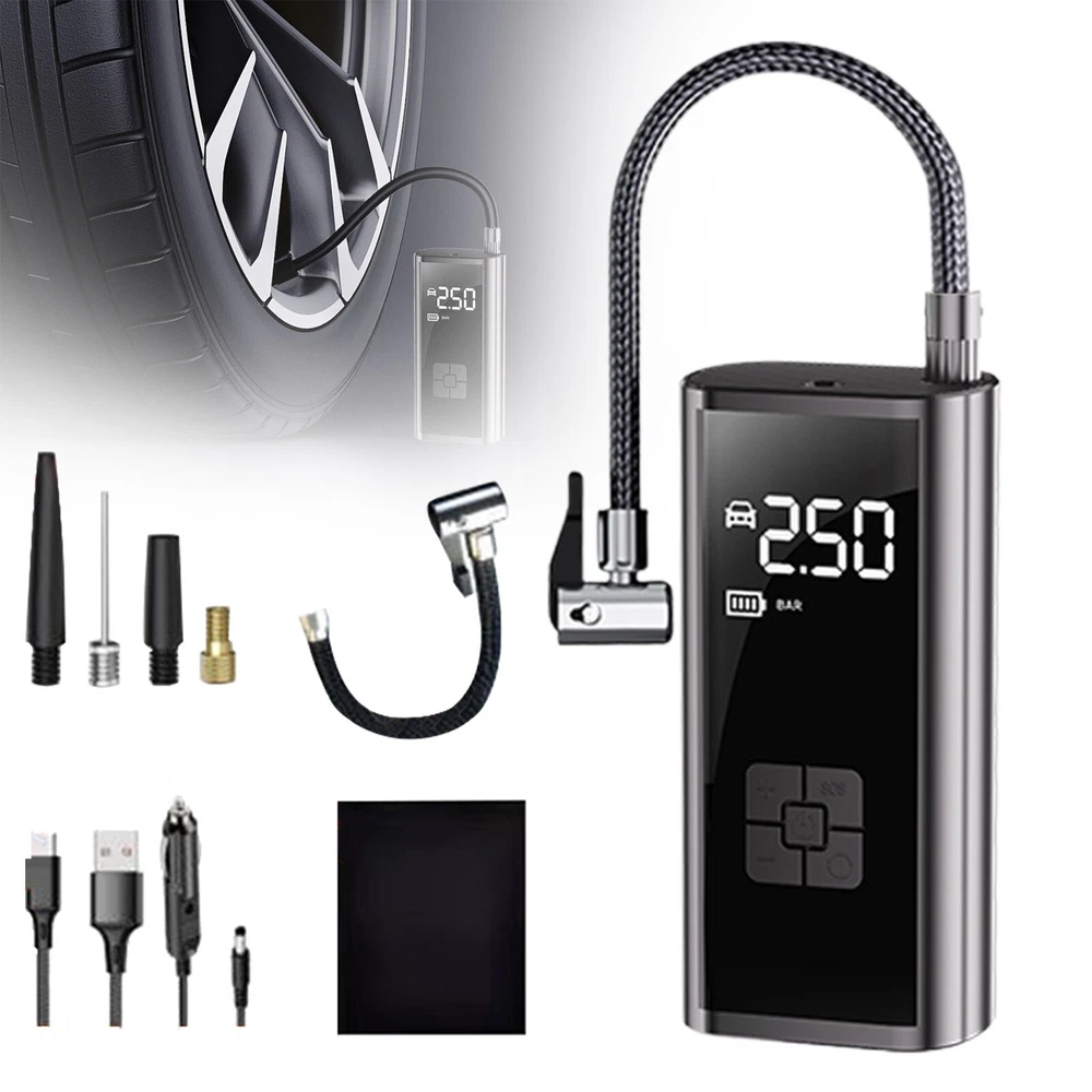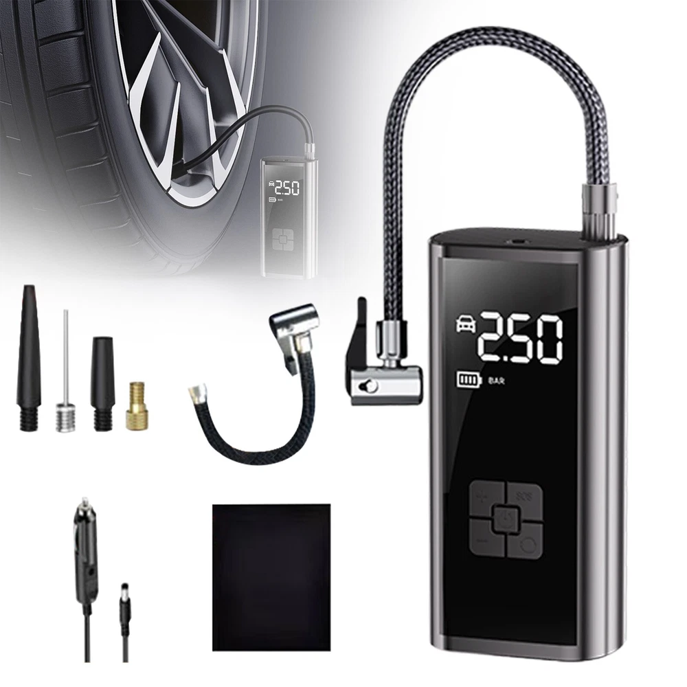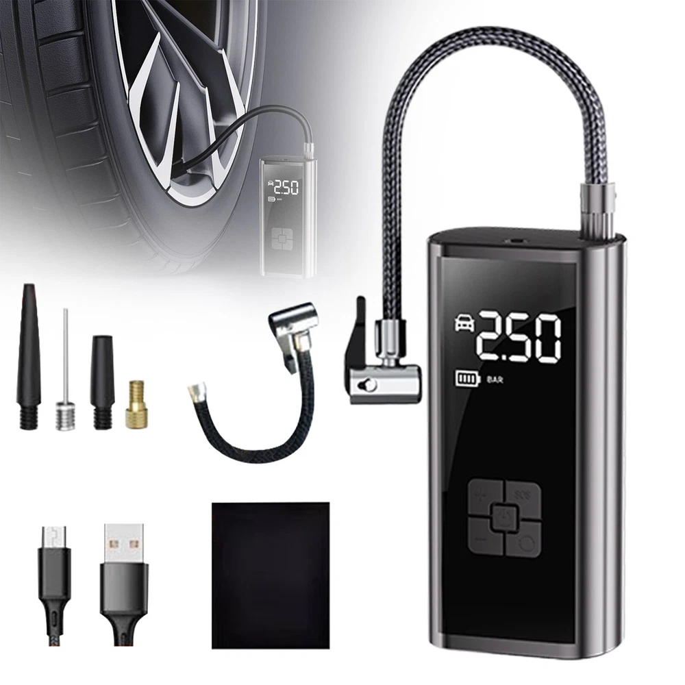 This portable air pump is a lifesaver! It inflates tires super fast (19L/min) and works on cars, bikes, and more. Love the rechargeable battery and plug-in option—super convenient. The LED screen shows accurate pressure readings, so no more guessing. Lightweight and easy to carry, it’s perfect for quick fixes at home or on the go. Highly recommend!