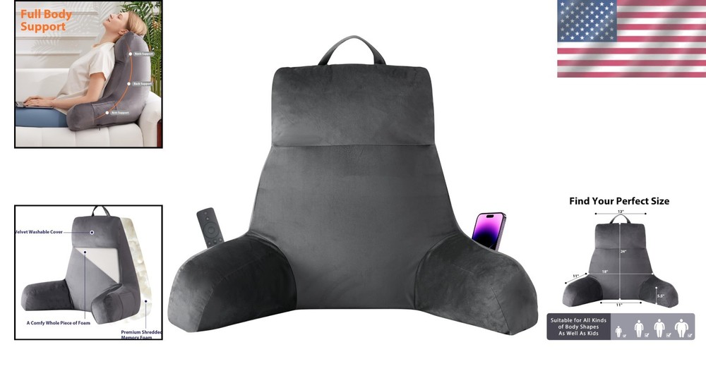 Portable Back Pillow with Arms - Perfect for Reading, Lounging & TV Watching ‹ › ‹ › ‹ › ‹ › ‹ › ‹ › ‹ › ‹ › ‹ › Portable Back Pillow with Arms Perfect for Reading, Lounging & TV Watching Features: Upgraded Size and Support: 24-inch pillow filled with shredded memory foam and a whole piece of foam on the back. Comfortable Structure: 13-inch-wide headrest and 11-inch arm extensions contour to your body’s curves for optimal alignment. Adjustable Foam: Easily unzip the inner liner to customize the foam filling to your personal preference. Versatile Use: Perfect for reading in bed, watching TV, playing games or lounging on the couch. Multi-functional design offers comfortable back support for various activities. Convenient Storage: Handy side pocket storage in the arms for your essentials—phones, glasses, books, tablets, or remotes. No more fumbling for your devices; everything you need is neatly organized and within easy . Portable Design: Integrated carry handle for effortless transport— move from bed to couch or enjoy on-the-go relaxation. Easy Care: Removable cover for easy cleaning—wash in cold water on a gentle cycle, then tumble dry on low heat. Breathable fabric ensures freshness, making it perfect for everyday use or as a thoughtful gift. Why choose our Portable Back Pillow? Elevate your relaxation experience with our Portable Back Pillow with Arms, specifically designed to offer exceptional comfort and support. Its unique contouring design filled with shredded memory foam and the ease of adjustable support makes this pillow perfect for anyone who values comfort while indulging in their favorite activities. Say goodbye to discomfort and hello to cozy moments of reading, lounging, or binge-watching your favorite series. This versatile, portable pillow also features convenient storage pockets, making it easier than ever to keep your essentials close at hand. With easy care instructions, this pillow is not only a luxurious treat for yourself but also a delightful gift for others. Experience comfort redefined — order your Portable Back Pillow today! Shipping Free & Fast Shipping - We offer free shipping to most of the USA with a normal delivery time of 3-7 days. However, due to the current situation, additional delivery time (up to 3 weeks) may be required for some items. Alternative Carriers - We may use alternative carriers (e.g. USPS, FedEx, UPS, etc.) to ensure your package arrives safely and on time. Due to the use of multiple carriers, we are unable to provide a tracking number automatically. Handling Time - Orders are processed and shipped within 1-2 business days of receiving cleared payment. Shipping Restrictions - Shipping to Alaska, Hawaii, Puerto Rico, Guam, and other US territories may incur shipping charges or delivery restrictions. Please contact us before ordering, or your order can be refunded/cancelled. State Restrictions - There may be restrictions based on your state of purchase. For example, certain items may not be shipped to California due to state regulations. Contact for Tracking Updates - If you require tracking updates or have any concerns about the delivery of your order, please feel free to contact us, and we will be happy to assist you. Return 30-Day Hassle-Free Returns - We want you to be completely satisfied with your purchase. If you are not, you can return the item within 30 days of receiving it for a full refund or exchange. Easy Return Process - To start a return, simply contact us and we will provide you with a prepaid return shipping label and detailed instructions. Restocking Fee - There are no restocking fees for returns. However, the buyer is responsible for return shipping costs if the return is not due to a seller's error. Refund Processing Time - Refunds will be processed within 5 business days of receiving the returned item in its condition. Payment We accept all major credit cards, PayPal, and Apple Pay for your convenience. Your payment information is secure and encrypted to ensure a safe and seamless transaction. Please complete your payment within 3 days of purchase to avoid any delays in shipping. Feedback Your feedback is extremely important to us. We strive to provide the best products and customer service possible. If you are satisfied with your purchase, please take a moment to leave us a positive review. If you have any concerns or issues with your order, please contact us before leaving negative feedback. We are committed to resolving any problems and ensuring your satisfaction. Contact Us If you have any questions or concerns, please feel free to out to our customer support team. You can contact us through the eBay messaging system. We are available Monday to Friday, 9:00 am to 5:00 pm EST, and we will do our best to respond to your inquiry within 24 hours. Buy it now and enjoy a pleasant shopping experience! Unit Quantity: 1.0 count Material: Memory Foam Features: Portable,Supportive,Adjustable,Breathable,Removable Cover Care Instructions: Machine Wash Room: Bedroom Size: 24inch Type: Reading Pillow Fill Material: Memory Foam Color: Grey Shape: Wedge Closure Type: No Closure