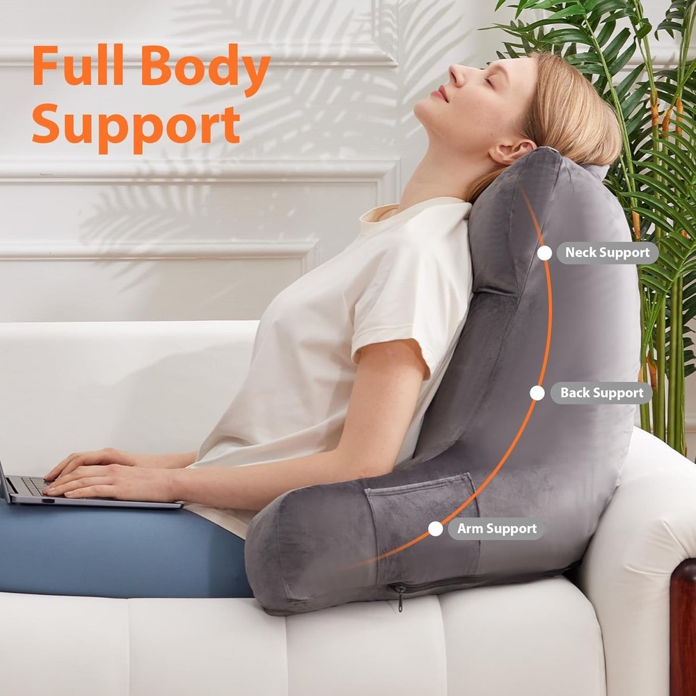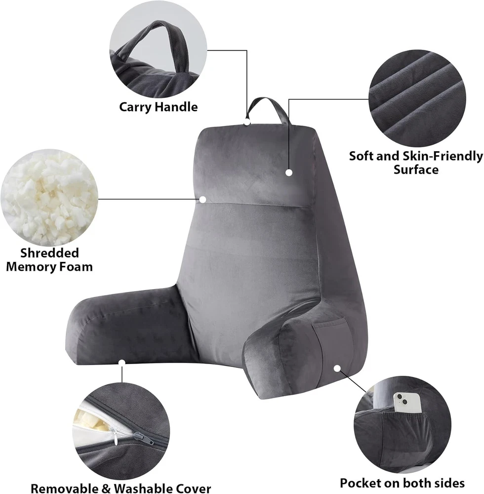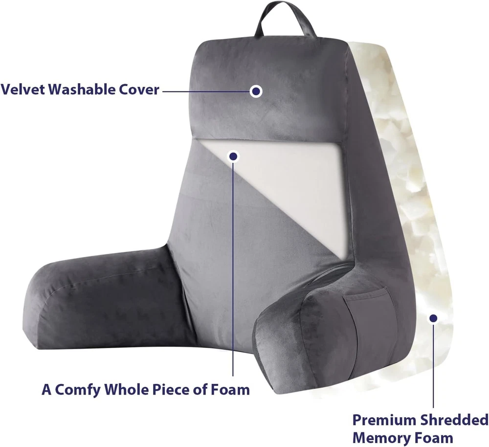 This back pillow is a game-changer for comfort! The shredded memory foam molds perfectly to my body, and the wide headrest and arm extensions make lounging feel luxurious. I love how I can adjust the filling for the perfect support—whether I'm reading, watching TV, or just relaxing. It’s so cozy and portable, I take it everywhere. Definitely worth it!