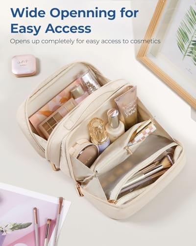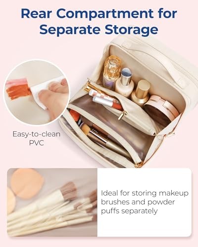 Return Policy Fast Delivery Trusted seller Travel Makeup Bag, Portable Make Up Bag, Wide-open Makeup Organizer Cosmetic Bags for Women for Travel Essentials Travel-Size Toiletries Accessories Bottles, Brushes (Beige) Product Description 【Efficient Storage Solution】This makeup bag organizer is designed with multiple compartments. The front compartment is perfect for storing bottles of cosmetics and toiletries, and it also features two storage pockets inside for blushes and lipsticks. The rear compartment is spacious enough to hold large eyeshadow palettes, cushion Foundation, blushes and loose powders. Additionally, the zippered divider pocket can securely store eyeliners, mascaras, lip glazes, and other longer items. The PVC clear pocket is designed specifically for holding makeup brushes, sponges and puffs. 【Quick Access to Items】The travel makeup bag can be unfolded almost 180 degrees, providing a spacious opening for easy access to your cosmetics, toiletries, and other travel essentials. The exterior quick-grab pocket is thoughtfully designed to store small items for touch-ups, such as lip glosses and lipsticks. Measuring 9.0*4.5*5.5 inches, it's perfect for organizing your daily cosmetics and travel essentials for a week's travel! 【Easy-to-Clean Pockets】This makeup travel bag comes equipped with 1 PVC stain-resistant zipper pocket, ideal for storing a full set of makeup brushes, sponges, and powder puffs. A simple wipe-down keeps them clean, eliminating worries about makeup stains. 【Premium Quality】This cosmetic bag is made of water-resistant polyester for excellent durability and protection. This make up bag features custom metal zippers that ensure smooth operation, and a sturdy leather top handle that makes it easy to carry. Its well-organized interior, combined with its fashionable design and portability, make it an ideal choice for a stylish and convenient makeup bag. 【Versatility】With an elegant and charming appearance and available in 3 colours, this large makeup bag serves not only as a travel companion but also as a versatile toiletry bag, travel wallet, tech accessory organizer, travel accessory bag, or daily storage pouch. These cosmetic bags for women are perfect gifts for Women's Day, Valentine's Day, birthdays, anniversaries, Mother's Day, and other holidays. Shipping Returns Payment Shipping Shipping is FREE to all addresses other than APO/PO boxes in the lower 48 states. All our stock ships from US-based warehouses. Shipped via USPS or UPS (depending on location and package weight) Unless stated otherwise, all orders will ship within 24-72 hours of your payment being processed. Check our feedback to see the great reviews of FAST shipping we offer. Returns Seller does not accept returns Payment We currently accept payment via eBay managed payments only. Once payment is cleared, we will dispatch your shipment within 1-3 business days. Please refer to the "Shipping" tab for more information regarding shipping speed to your destination.