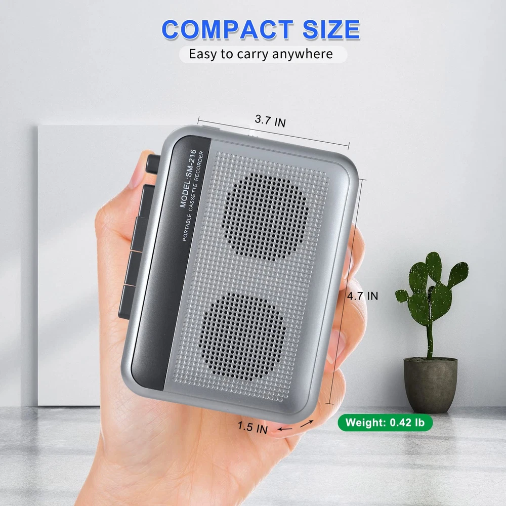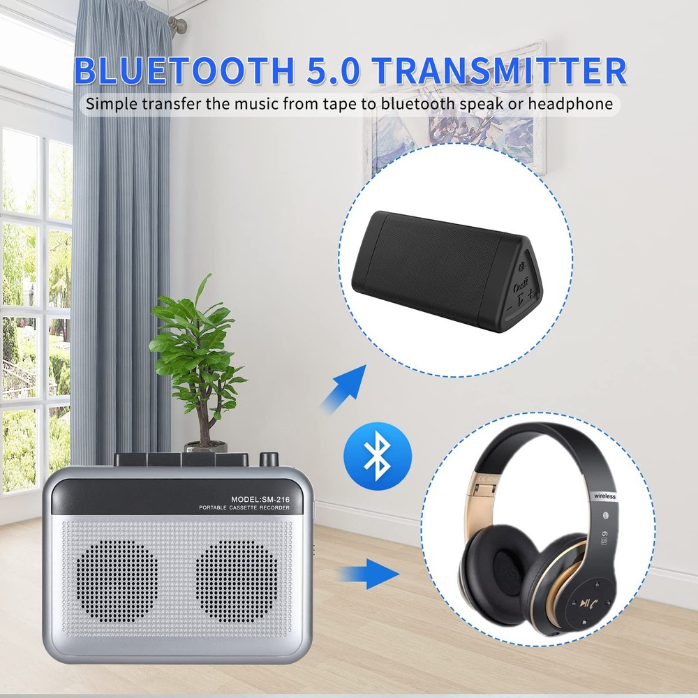 Walkman Cassette Player Bluetooth Transmitter Rediscover your love for vintage audio with our Cassette Player Bluetooth. This innovative device seamlessly combines classic cassette recording and playback with modern Bluetooth technology. With built-in Bluetooth 5.0, you can effortlessly connect to your Bluetooth headphones or speakers, ensuring stable and fast transmission for a superior listening experience. This versatile cassette player supports external microphone recording, allowing you to capture your voice and sounds directly onto your old tape cassettes. Enjoy the rich audio quality through the built-in dual speakers, or use the earphone jack for a more personal listening experience. Compact and lightweight, measuring just 4.7 x 1.5 x 3.7 inches and weighing only 0.42 lbs, this Walkman cassette player is designed for portability without compromising durability. Crafted from eco-friendly materials, it reflects our commitment to sustainability while offering reliable performance. Power it up with the provided AC adapter or simply use AA batteries for on-the-go convenience. Whether reliving nostalgic moments or introducing the charm of cassette tapes to a new generation, this Cassette Player Bluetooth is the perfect addition to your audio collection. Experience the fusion of past and present with this essential audio device. 【Versatile Cassette Player】Our Cassette Player Bluetooth allows you to seamlessly record and listen to your cherished old tape cassettes while supporting external microphone recording, offering a nostalgic experience combined with modern technology. 【Versatile Bluetooth Connectivity】The Cassette Player Bluetooth features advanced Bluetooth 5.0 technology, ensuring stable and fast audio transmission to your Bluetooth headphones or Bluetooth speakers for an enhanced listening experience. 【Dual Speakers and Earphone Jack】Equipped with built-in dual speakers and an earphone jack, this cassette tape player Bluetooth allows you to enjoy your favorite tunes aloud or privately, catering to various listening preferences. 【Compact and Portable Design】Measuring just 4.7 x 1.5 x 3.7 inches and weighing only 0.42 lbs, this walkman cassette player is perfect for on-the-go music lovers, providing a lightweight and space-saving solution to enjoy your cassette tapes anywhere. 【Eco-Friendly Materials】Crafted from high-quality, eco-friendly materials, our cassette player walkman prioritizes durability and environmental responsibility, ensuring you enjoy your music without compromising on sustainability. 【Convenient Power Options】The cassette tape player Bluetooth can be powered by an AC adapter(USB included) or AA batteries, offering flexibility and convenience for home use or outdoor adventures, along with a reliable after-sales service for peace of mind.