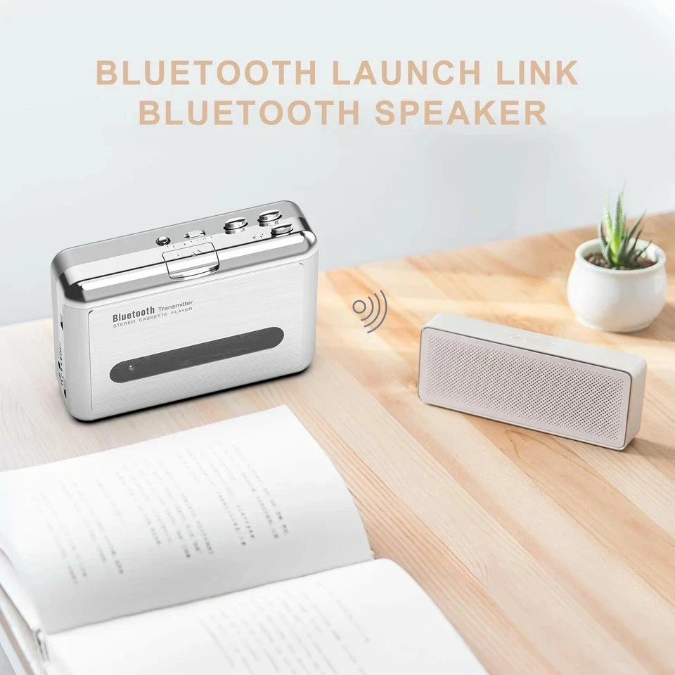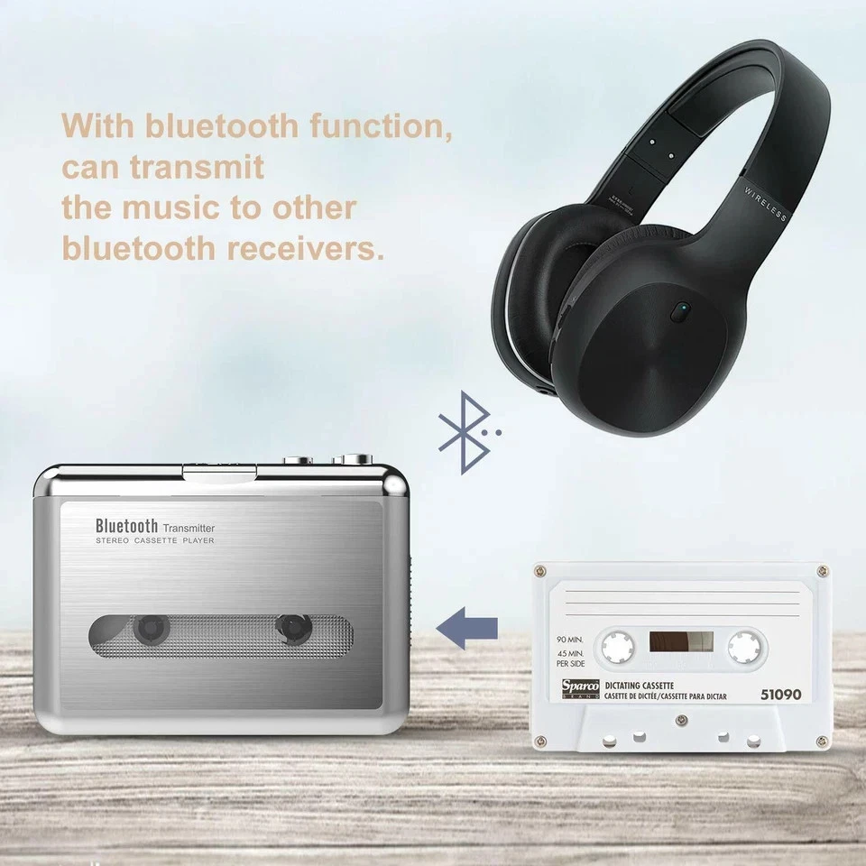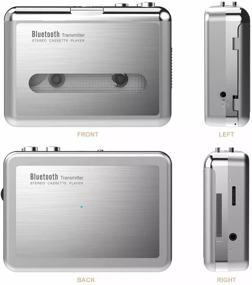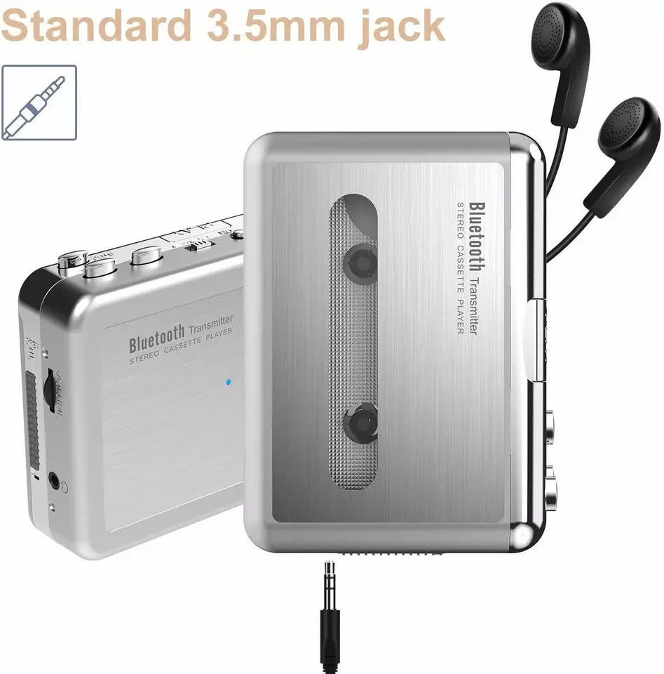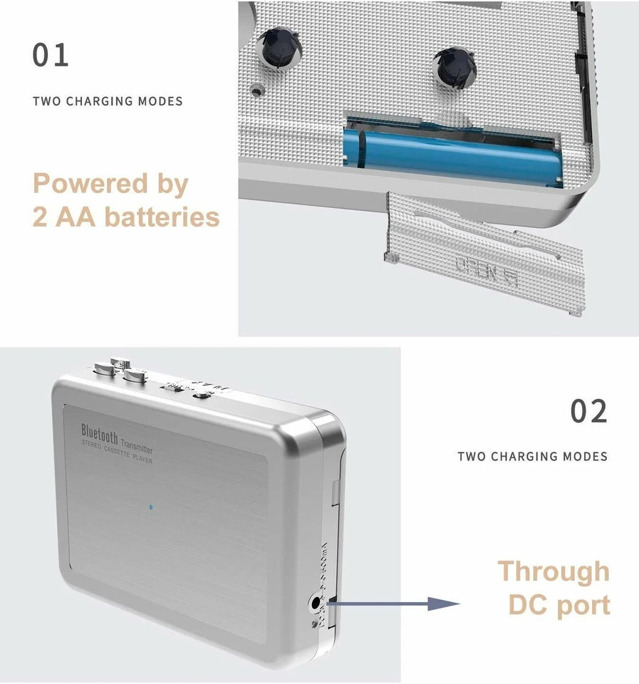 The personal cassette player looks the part with its retro silver casing and comes complete with earphones for your private listening. And the 3.5mm Headphone socket allows you to plug in your own headphones for a fuller sound if you prefer. With bluetooth function, can transmit the music to other bluetooth receivers and let everyone enjoy those retro cassette sounds. Bluetooth function:you can transmit the music to other bluetooth speaker or bluetooth earphone. This retro-style bluetooth music player allows you to return to the old days and relive your good memories past.