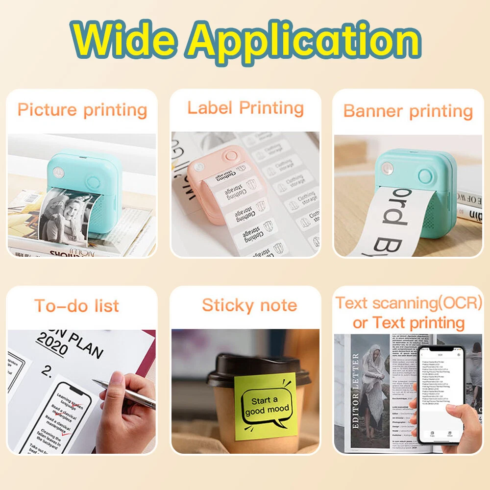 Features: 1、[Multi-type roll paper support] Support thermal paper / self-adhesive stickers / labels paper, etc., or other multiple colours, the size of the long 5.7cm roll paper. 2、[Household Label Printing] Sorting and storage, kitchenware labelling, household items, cosmetic packaging, office document organisation, commodity labelling and pricing etc. can be printed, convenient and fast. 3、[DIVERSITY APP] APP interesting templates to choose from, add style to the stickers, various styles and sizes can be adjusted. 4、[Print photos] After connecting the APP, you can directly print the photo pictures, and the colour shade of the photos can be adjusted according to the pictures. 5、[Wide range of uses] Compact size, easy to carry, students can print revision materials and other content to facilitate learning, home can print labels for storage and organisation. Merchants can be used to print price tags, craft enthusiasts can be used to print records handbook, etc. .... Note: The product comes standard with a roll of thermal paper, thermal paper can not be pasted, if you need other specifications of the roll of paper, please purchase your own use according to demand. Specification length 5.7cm small rolls of paper are available. Parameters: Connection: bluetooth wireless inkless black and white printing thermal printing Interface: TYPE-C Printing accuracy: 200dpi Power: 5v=1A Battery capacity: 1200 mAh Applicable printing paper: 57*30mm/57*25mm APP use: Funny Print APP version supports 13 languages: Simplified Chinese, English, Spanish, Arabic, Italian, Japanese, Korean, German, French, Portuguese, Russian, Thai, Farsi, the software can be upgraded later will add more languages. Packing list: Printer * 1 thermal printing paper * 1 charging cable * 1 manual * 1