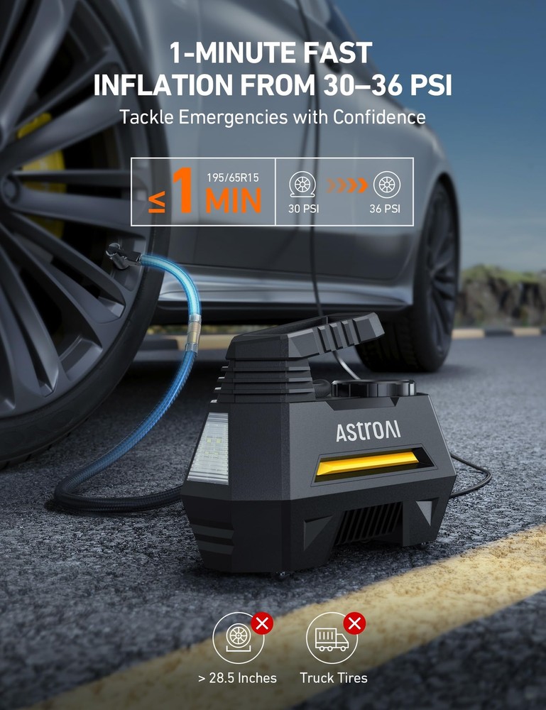This portable air compressor is a lifesaver! It’s super easy to use with the digital pressure gauge for precise filling, and the durable ToughUltra tech ensures it won’t quit on you mid-job. The LED light is handy for nighttime emergencies, and it works great on cars, bikes, even balloons. Compact yet powerful—highly recommend for stress-free inflation anytime!