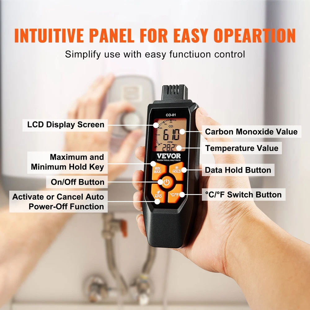 Stay Safe with Our High-Quality Carbon Monoxide Detector Ensure the safety of your loved ones and your property with the Portable Carbon Monoxide Detector . Ideal for both home and industrial applications, this reliable device monitors carbon monoxide levels in real-time. Equipped with both audible and visual alarms, it provides immediate alerts when dangerous CO levels are detected. Key Features: Wide Detection Range: Measures CO levels from 0 to 1000 PPM, ensuring comprehensive monitoring. Audible & Visual Alarms: Dual alarm system for prompt alerts, ensuring you never miss a warning. Temperature Sensor: Integrated sensor for simultaneous CO and temperature monitoring. LCD Backlit Screen: Clear, easy-to-read display screen with LED backlighting for use in low-light conditions. Portable Design: Lightweight and ergonomic, making it easy to carry and use on the go. Battery Included: Comes with 3 x batteries for immediate use out-of-the-box. Product Specifications: Operating Temperature: 32°F - 122°F / 0°C - 50°C Operating Humidity: 0-70%RH Measuring Range: 0-1000 PPM Operating Voltage: 4.5V Display Screen: LCD Item Model Number: CO-01 Product Weight: 0.29 lbs / 0.13 kg Product Dimensions: 6.10 x 1.97 x 1.22 in / 155 x 50 x 31 mm Operating Current: About 5mA Main Material: ABS Benefits: Enhanced Safety: Provides peace of mind by alerting you to harmful CO levels. Versatile Use: Suitable for both home and industrial environments. Easy to Use: Simple interface and compact design make it user-friendly. Immediate Deployment: Batteries included for immediate, hassle-free setup. Why Choose Our Carbon Monoxide Detector? Engineered for reliability and ease of use, our CO detector is your first line of defense against carbon monoxide poisoning. Its advanced features and durable construction offer unparalleled protection, making it an essential tool for any household or industrial setting.