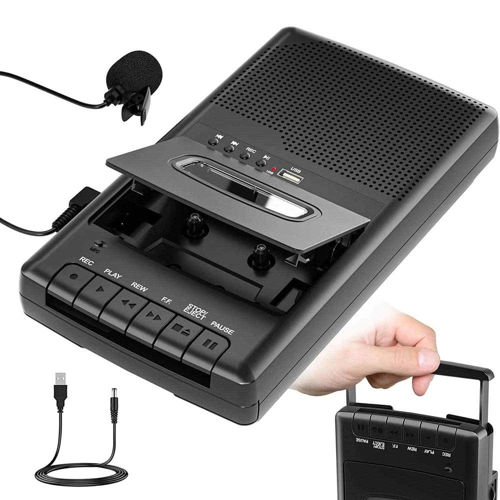 Multifunctional & Portable Design: With a retractable handle, it is easy to take this tape recorder anywhere you want. The Player, recorder, and converter 3 in 1, meet your different requirements. Voice Recorder: The cassette recorder contains a built-in microphone and an extra lapel microphone, which can meet the recording needs of different situations, like in class, a meeting, or an interview. You can record directly to tapes or digitally in MP3 format to an inserted USB. Tapes to USB: With this USB cassette to mp3 converter, cassette tapes can be converted to MP3 files on your USB Flash Disk. Digitalize your old cassettes, and keep your old cassettes, voice, and memory more manageable. No driver, APP, or computer is needed. Two Ways of Power Supply: The shoebox tape player can be powered by an AC adapter (not included) or 4*C batteries (not included). It can meet your different needs in different places. Go Back To Your Old Time: Retro looks combined with the convenience of modern technology make this Walkman cassette player a great value. Portable cassette players can take you back to the old days, you can feel the atmosphere of old music while listening to cassettes. Retro cassette player with excellent sound quality and high-fidelity lossless playback.