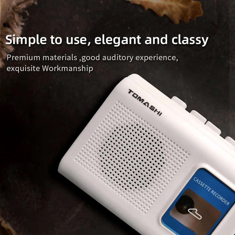 Portable Cassette Player Tape Recorder Walkman with Built-in Speaker,Microphone,Headphone Jack-, 4.57 x 3.54 x 1.38inch SMALL SIZE AND EASY HANDLE-TOMASHI walkman cassette player is small and compact and easily portable,rewind fast forward stop play and record button,are easy to use. TAPE PLAYER RECORDER-Multifunctional portable personal walkman cassette player tape recorder with built-in speaker support either built-in speaker playing and listening or headphone mode listening,built-in microphone or microphone recording. Most people use this cassette recorder listen to music,learn language. AUTOMATIC STOP- To protect your cassette tapes and prevent unnecessary wear to the pinch roller of the cassette mechanism,this unit is equipped with an Automatic Stop System. When the tape ends during play, the PLAY BUTTON will automatically release to stop the cassette from running. AC/DC POWER SUPPLY-This walkman uses 2 AA batteries (no included) or an USB power supply (no included), if you use the USB power recommend remove any battery first. EXCELLENT GIFT IDEA - Having a tough time deciding on a gift for a loved one? Our cassette players make an ideal present for music enthusiasts on Christmas, Thanksgiving, or birthdays. Portable cassette player, tape recorder Walkman, cassette tape player with speaker, built-in speaker cassette player, Walkman tape player recorder, vintage cassette player, portable tape recorder with microphone, retro cassette Walkman, handheld cassette player.