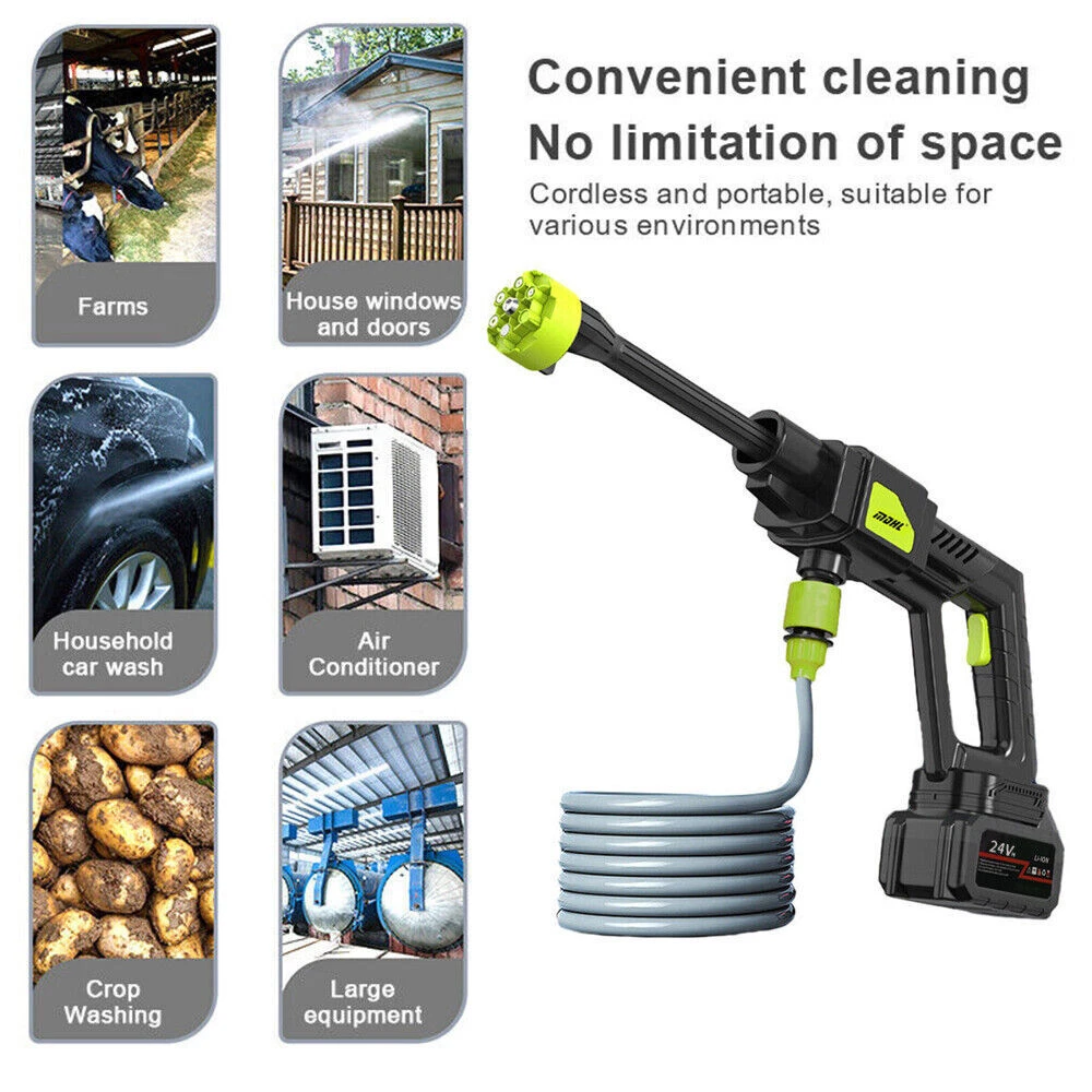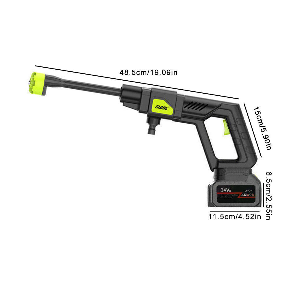 Features : 【Upgraded brushless motor】 【Multiple Spray Patterns】 【POWERFUL BATTERY】 【Draw Water from Anywhere】 【Versatile Use】 Specification : Motor: Brushless Motor Material: ABS and copper Power Supply:Lithium battery Battery capacity: 12000mAh(Note: A single battery is 1200mah, a total of 10 batteries are connected in series and parallel) Power:300W Rated voltage:21V maximum voltage:48V Product pressure: 30Bar Drive: Lithium battery wireless drive Spray type of water gun: 6-IN-1 Multi-Function & Rotatable Spray Nozzles Jet stroke: 6-12 meters Water pipe length: 5 meters Car washing equipent type: household car washing machine Water source type: Bucket / Faucet Self-priming Scope of application: car washing, watering flowers, water vegetables, spraying, garden cleaning, etc. 6 In 1 Cordless Car High Pressure Washer Jet Water Wash Cleaner Gun + 2 Battery Features : 【Upgraded brushless motor】: Most cordless pressure washers use brushed motors for it ,we use brushless motors .brushless motor is upgrade motor ,it has higher efficiency and controllability, longer working life ,save electric power , brushless motors lack brushes and physical commutators, they require less overall maintenance .and its cost is also much higher than brushed motor. 【Multiple Spray Patterns】:The battery powered pressure washer is equipped with adjustable nozzles from 6in1 nozzles and foam sprayers. You can turn the nozzle freely according to your cleaning needs. Easily removes all kinds of stubborn stains. Suitable for a variety of scenarios, including vehicle cleaning, exterior wall and floor cleaning, window and door cleaning, etc. Foam bottle attachment for quick foaming to easily remove stains from vehicles and windows. 【POWERFUL BATTERY】:Powered by 2 21V batteries, it is not limited by wires, very convenient to carry outdoors. One charge can provide up to 30-50 minutes of uninterrupted cleaning experience. 【Draw Water from Anywhere】: The portable pressure washer with a 16.4FT hose that makes it easy to take water from any source, so it's suitable for rivers, pools or buckets. It can also be connected to a faucet. The hose is equipped with a filter that effectively filters out particles, waste leaves or sludge, making it easy to draw water from buckets, pools, rivers or any water source. 【Versatile Use】Widely used for cleaning vehicles, bicycles and boats. The portable electric cleaner is also perfect for a variety of cleaning tasks in the home and garden. It effectively waters plants, cleans walls, floors, bathrooms, swimming pools, doors, driveways, fences and hard-to-reach corners. Specification : Product name: Wireless High Pressure Car Wash Washer Gun Motor: Brushless Motor Material: ABS and copper Power Supply:Lithium battery Battery capacity: 12000mAh(Note: A single battery is 1200mah, a total of 10 batteries are connected in series and parallel) Power:300W Rated voltage:21V maximum voltage:48V Product pressure: 30Bar Drive: Lithium battery wireless drive Spray type of water gun: 6-IN-1 Multi-Function & Rotatable Spray Nozzles Jet stroke: 6-12 meters Water pipe length: 5 meters Car washing equipent type: household car washing machine Water source type: Bucket / Faucet Self-priming Scope of application: car washing, watering flowers, watering vegetables, spraying, garden cleaning, etc. Package included: 1x Wireless car washing machine 1x Lithium battery 1x Charger 1x 5m Water pipe 1x 6-in-1 nozzle 1x Filter 1x Foam pot 2x Adapter Payment Shipping Return Contact us About us Payment 1.Paypal, Credit Card, G Pay etc, many payment way is accepted. 2.Please be sure your shipping address is correct before make a payment. Shipping 1.We will ship out the item within 1-3 business days after comfirming the payment, appreciate your patience. 2.If the items are broken on the way( we will check the orders clearly before we sent them ),please contact us in 3 days you received it. We will send you a new one or refund your payment. Return 1.We stand behind every buyer.Items can be returned for exchange or refund within 30 days. 2.Please contact us when you have any confusion of our item, we will solve the trouble for you as soon as possible. Contact us 1.This is professional Seller.We will reply your message within 24 hours. 2.Please contact us whenever you have any question about the item. We will deal with it as soon as possible. 3. If you are unhappy with the item or our service,please Contact Us before leave feedback,just give me a chance,thank you! About us 1. Unless specified otherwise, all our products are IN STOCK and are shipped from Local warehouse - Not Overseas! 2. We provide a 30 day Satisfaction Guarantee or your money back (provided items are in the same new and resaleable condition.) 3. We have a PayPal Verified Business Account, please buy with Confidence! 4. Every item will be tesrted before send.We know our products well and if we don't have the answers we will do our best to find them for you! 5. Our friendly team look forward to serving you! Your satisfaction is our No.1 Priority We will do our best to satisfacy you.