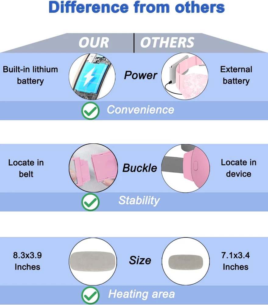 Fast Shipping Great Customer Support Satisfaction Guaranteed DESCRIPTION Shipping Shipping Shipping All domestic packages are shipped for Free (Unless other shipping method was selected during the checkout) Most items ship and arrive much sooner than the estimate delivery date. Usually within 2-3 days from payment. However, we have longer estimates to compensate for the occasional delay or supply chain breakdown. We do not accept P.O. BOXES - PLEASE PROVIDE A PHYSICAL ADDRESS Return Return Return In the event that you would like to return your purchase, we allow returns that are processed within the defined return date (the return date is to be found in the return policy/shipping and handling section) Please contact us for a return authorization and the return shipping address. Payment Payment Payment PayPal is our preferred method of payments it's the quickest, easiest and most secure way to pay for your goods or services online. PayPal offers buyer and seller protection should there be a problem. If you do not have a PayPal account, to get started and buy your first item with us is very easy. Simply click on the 'Buy It Now' button and follow the eBay checkout steps. Select PayPal as the payment method you then will be given the chance to enter your card details in to PayPal's secure checkout in order to pay for your order. Once the payment has been made, you will then be given the opportunity to make your own PayPal account to make paying for your items in the future very easy. Should there be a problem with payment please do let us know. Feedback Feedback Feedback Customer satisfaction is very important to us. If you have any problem with your order,please contact us and we will do our best to make you satisfied, please do not leave a negative feedback before we resolve your problem. We guarantee that your issue will be solved quickly. As long as you are happy with your purchase of , please leave us a positive feedback. Your feedback is very important to us it affects our search placement on eBay. We will leave a positive feedback for you in return automatically once we receive your feedback. Contact Us Contact Us Contact Us If you have any queries, please contact us via ebay. We usually respond within 24 hours on weekdays. Thank you for visiting our ebay store! New Design: The electric portable cordless heating pad has 4 heat levels and 4 massage modes, adjustable elastic belt with connect buckle and Type-C charging. Stable Buckle: The heating belt was designed with Seizing-up buckle. It let device stabler, no fall off any more. Moreover, it is more easily when using the device. Large Heating Area: The electric heating belt has enlarged the size to 8.3x3.9x1.0 inches, so that it has more heating area which can suitable for more part of your body such as belly, back, neck. Safety: The portable heating pad is designed to automatically shut down. If you fall asleep during use, our product will automatically turn off within 30 minutes when it detects that you have not made any movement, which can ensure your safety. If you want to use it again, just turn it on again. Best Gift for you: The menstrual heating pad is a good gift for friends and loved ones for any holiday or special event, such as Valentine's Day, Mother's Day, birthday, holiday, anniversary.(Note: The heating pad has more effective heating function. For the first use, we suggest starting from lowest temperature level, then adjust the temperature level according to your feelings. ) Portable Cordless Menstrual Heating Pad with 4 Heat Levels and Massage Modes Click here to see description Fast Shipping Great Customer Support Satisfaction Guaranteed DESCRIPTION Shipping All domestic packages are shipped for Free (Unless other shipping method was selected during the checkout) We ship within two business days of payment, usually sooner Standard FREE shipping takes between 3-5 business days Expedited shipping takes between 2-3 business days Overnight shipping takes between 1-2 business days We do not accept P.O. BOXES - PLEASE PROVIDE A PHYSICAL ADDRESS We Ship Globally using ebay's GSP, the item is sent to a logistic center in KY and shipped from there to the rest of the world. International customers are responsible for all duties and taxes Contact your local authority for questions related to the amount of duties or taxes you will be responsible for Return In the event that you would like to return your purchase, we allow returns that are processed within the defined return date (the return date is to be found in the return policy/shipping and handling section) Please contact us for a return authorization and the return shipping address. Please contact us for a Return Merchandise Authorization (RMA) number. We advise you to use a reputable carrier service when returning your goods. Please pack all returns appropriately. We ship globally Via eBay's global shipping program (GSP). Thus we don't cover returns for items shipped globally. Buyers returning such items will be refunded ONLY for the item's cost and not for the shipping. please check the Voltage information and make sure it matches the one in your country. In case it's not stated in the description, do ask us. Payment PayPal is our preferred method of payments it's the quickest, easiest and most secure way to pay for your goods or services online. PayPal offers buyer and seller protection should there be a problem. If you do not have a PayPal account, to get started and buy your first item with us is very easy. Simply click on the 'Buy It Now' button and follow the eBay checkout steps. Select PayPal as the payment method you then will be given the chance to enter your card details in to PayPal's secure checkout in order to pay for your order. Once the payment has been made, you will then be given the opportunity to make your own PayPal account to make paying for your items in the future very easy. Should there be a problem with payment please do let us know. Feedback Cus