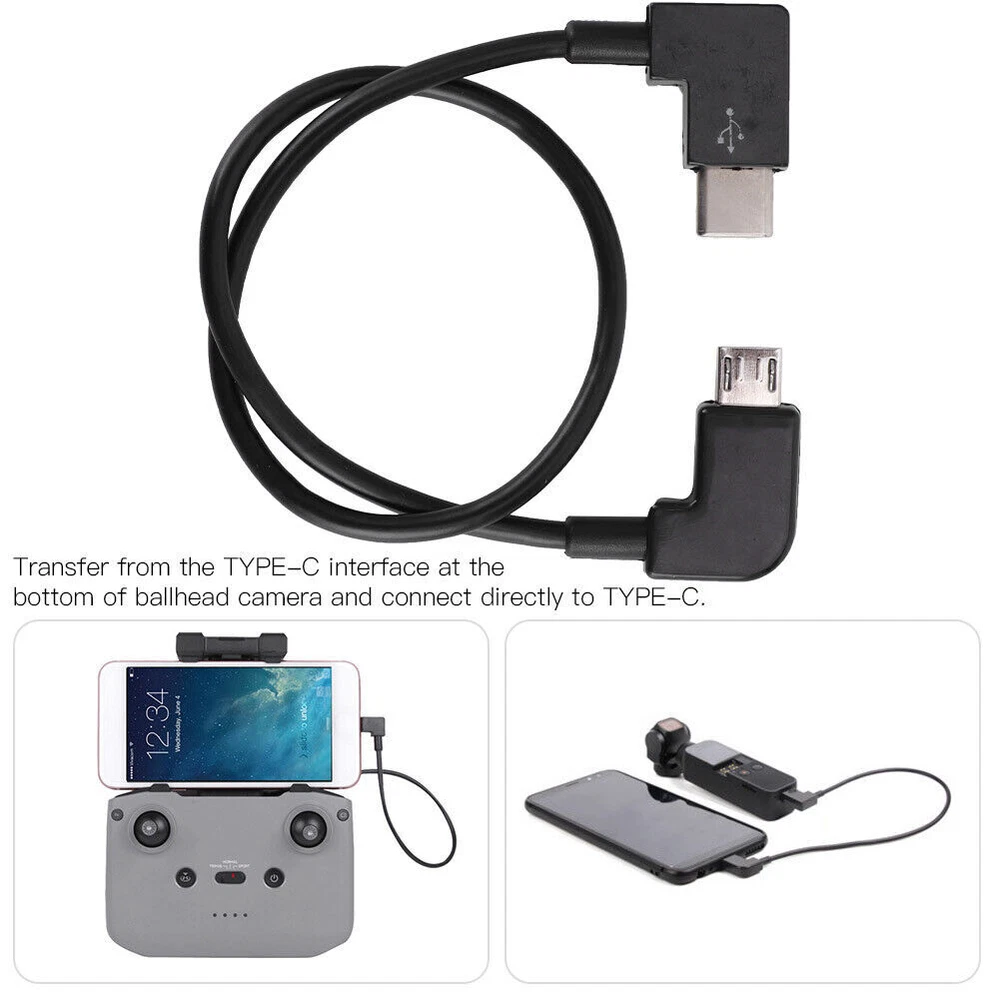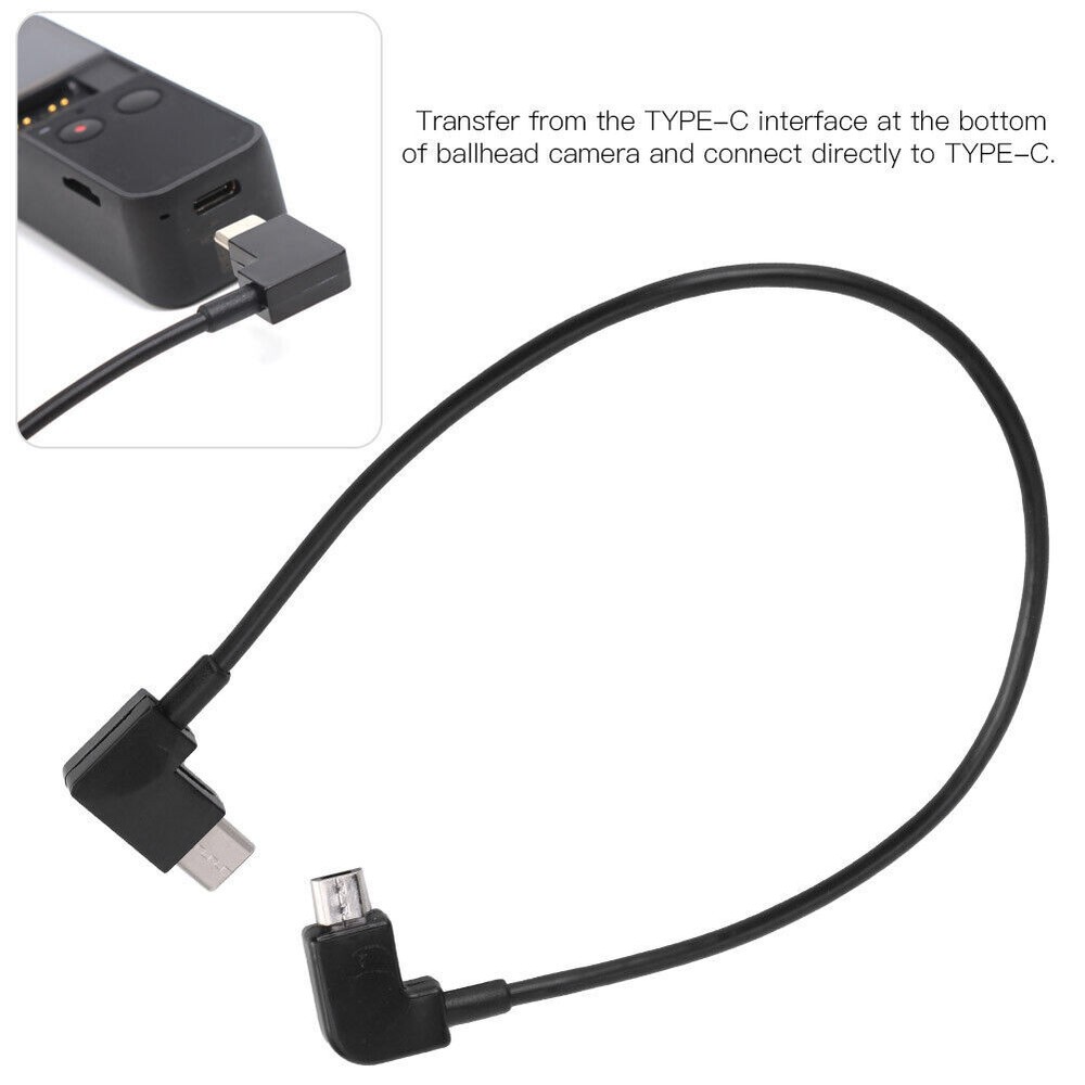 Feature: 1. Transfer from the TYPE‑C interface at the bottom for OSMO POCKET ballhead camera and connect directly to TYPE‑C. 2. Connect directly to your mobile phone, easy to use, open more ways to play. 3. Data transfer cable for AIR 2 drone/for OSMO POCKET ballhead camera. 4. Lightweight and portable, easy to carry and use. 5. Professional manufacturing, stable performance and high reliability. Specification: Condition: brand new Item type: Data Transfer Cable Material: plastic Color: black Length: Approx. 30cm/11.8in Weight: Approx. 10g Applicable models: for AIR 2/for OSMO POCKET Package List: 1 x Data Transfer Cable Note: Use the data cable to connect the phone and the camera, you need to remove the original data adapter, otherwise the phone cannot display the screen.